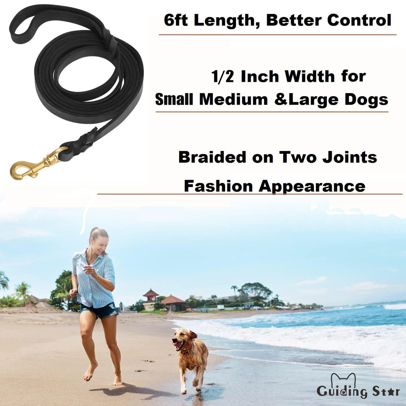 Guiding Star Leather Dog Leash 6ft, Dog Leashes for Large Dogs Heavy Duty, Soft Durable Braided Handmade Leather Training Leash for Large & Medium Dogs (6ftx1/2inch, Black)