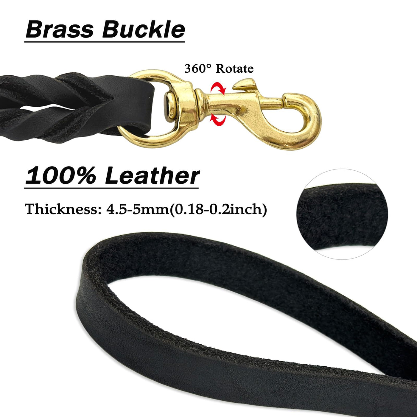 Guiding Star Leather Dog Leash 8ft, Dog Leashes for Dogs Heavy Duty, Soft Braided Handmade Leather Training Leash for Small & Me