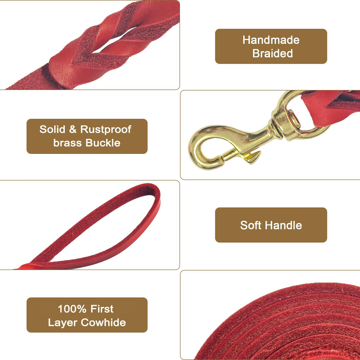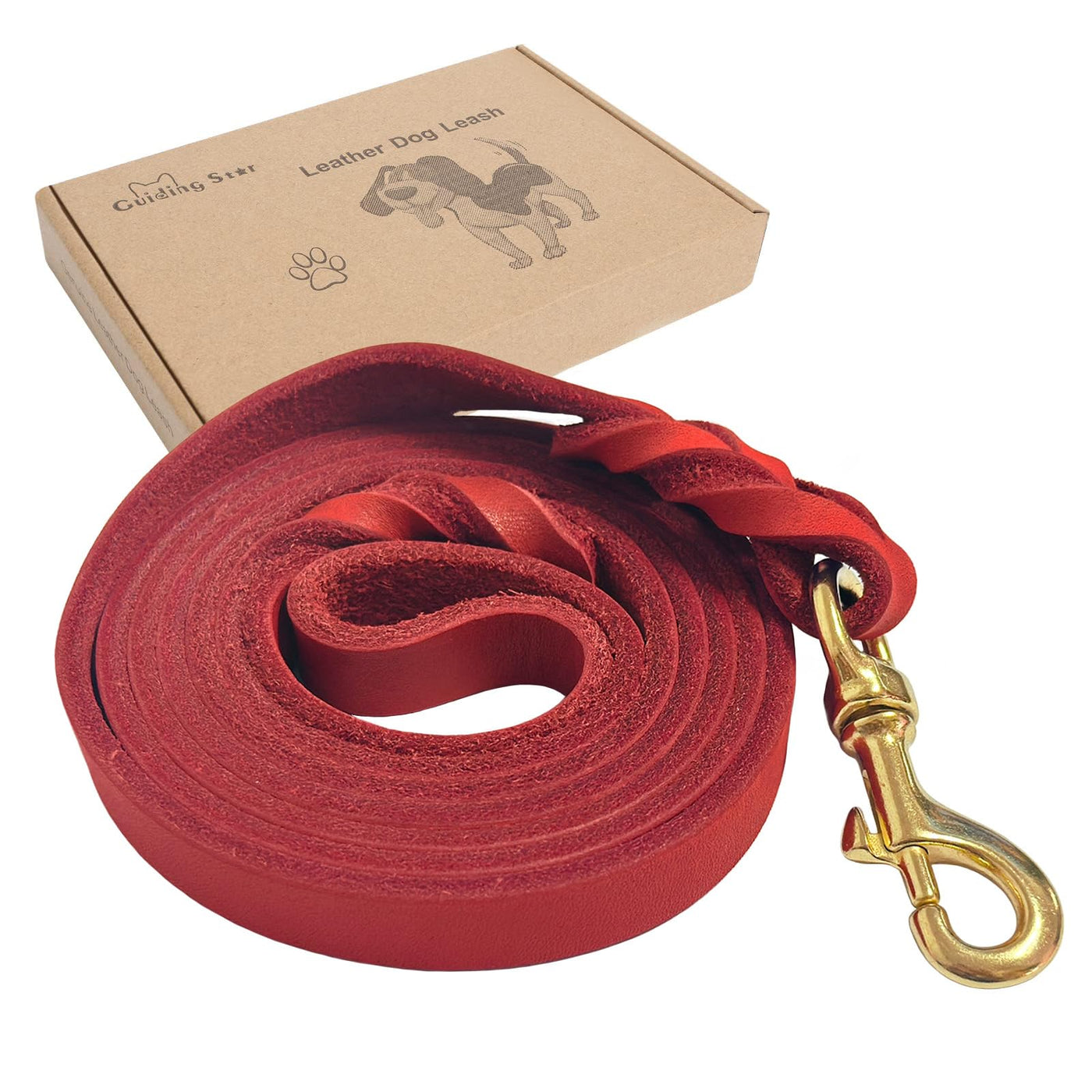 Guiding Star Leather Dog Leash 8ft, Dog Leashes for Large Dogs Heavy Duty, Soft Braided Handmade Leather Training Leash for Small Medium Large Dogs (8ftx1/2inch, Red)