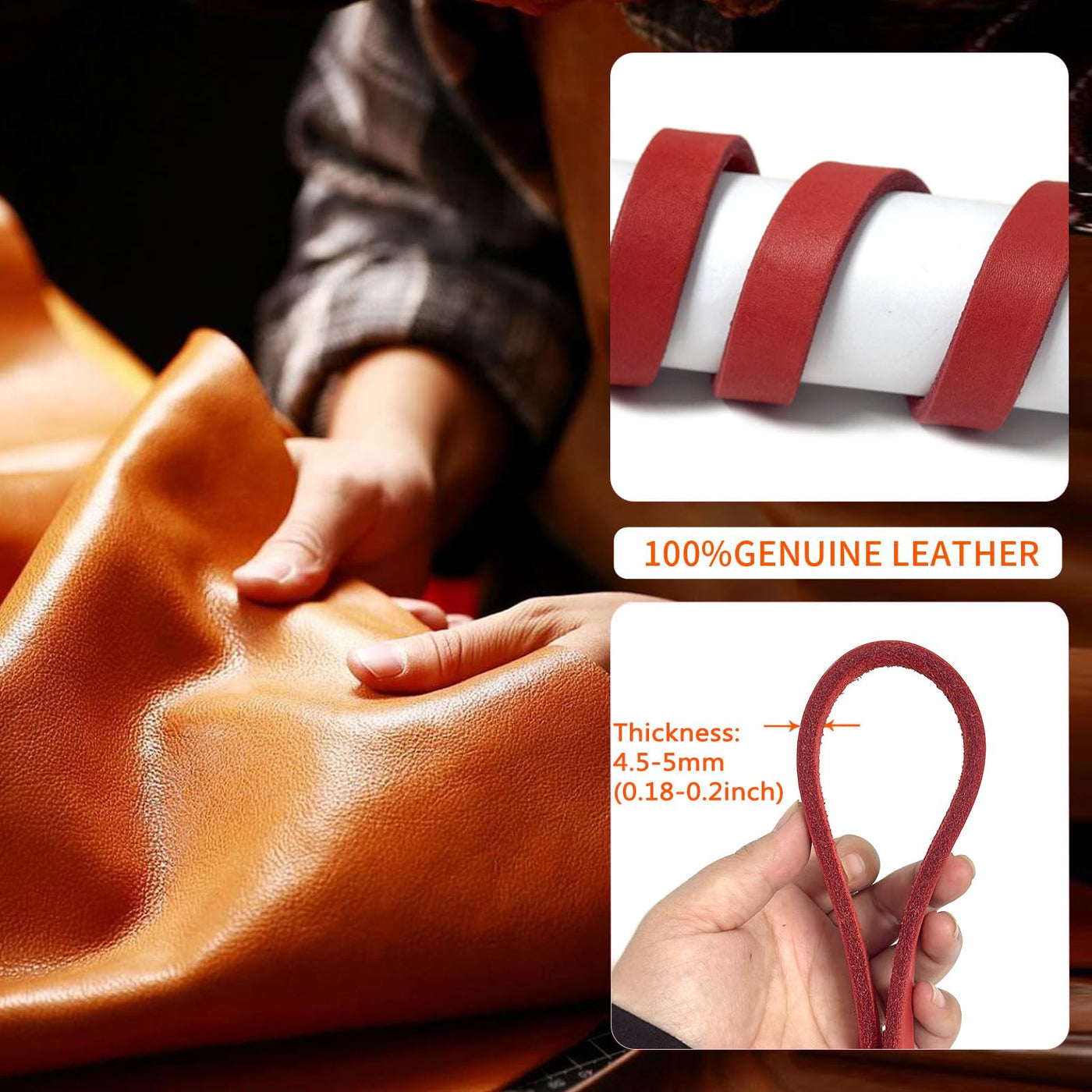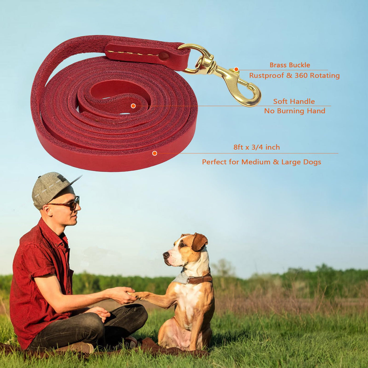 Guiding Star Leather Dog Leash 8Ft, Dog Leashes For Large Dogs Heavy Duty, Soft Handmade Leather Training Leash For Medium & Large Dogs (8Ftx3/4Inch, Red)