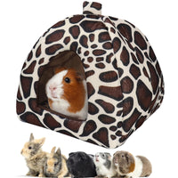 Guinea Pig Bed Rabbit Hideout Warm Fleece Cuddle Cup Washable Winter Sleeping House For Small Pet/Ferret/Chinchilla/Bunny (Leopa
