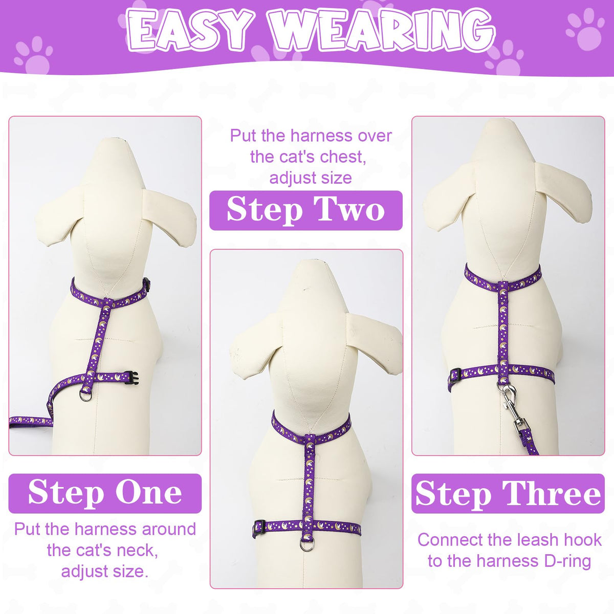 Specifications: Size: As The Picture Picture Color: Black And Purple Package Included: 2 X Cat Collars 2 X Cat Harness 2 X Cat Leash Notes: 1. Due To Manual Measurement, There May Be A Slight Error In Size And Weight. 2. Due To The Difference Between Different Monitors, The Picture May Not Reflect The Actual Color.