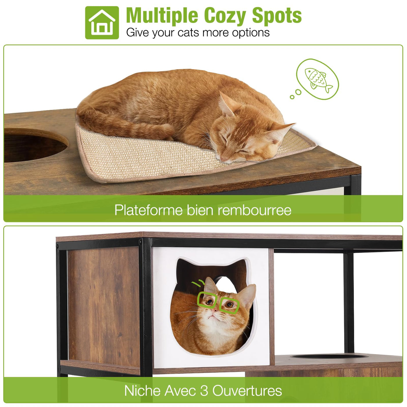Gutinneen Cat Litter Box Enclosure Cat Tree With Hidden Litter Box Furniture Cat Tower Cat Condo With Cat Cave, Scratching Post,