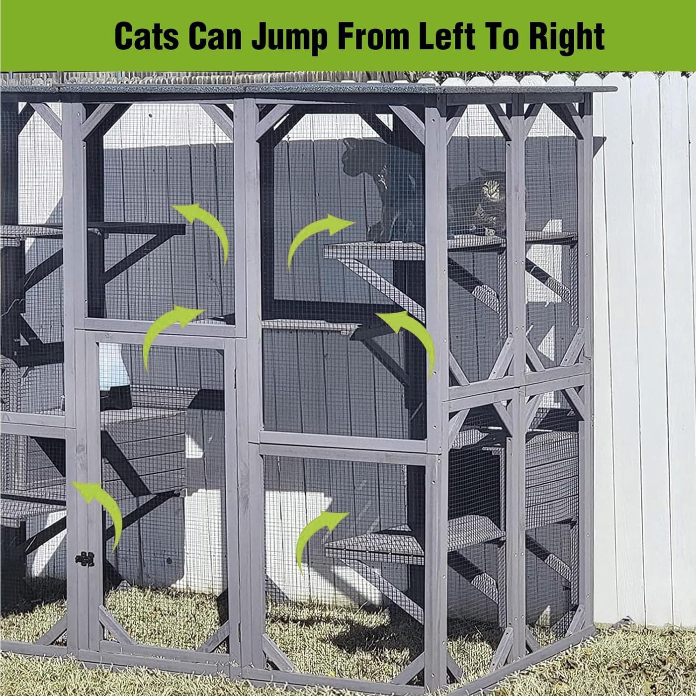 Gutinneen Catio Outdoor Cat Enclosure Large Walk In Window Cat House For Mulitiple Cats With 7 Platforms And 2 Resting Box,Aspha