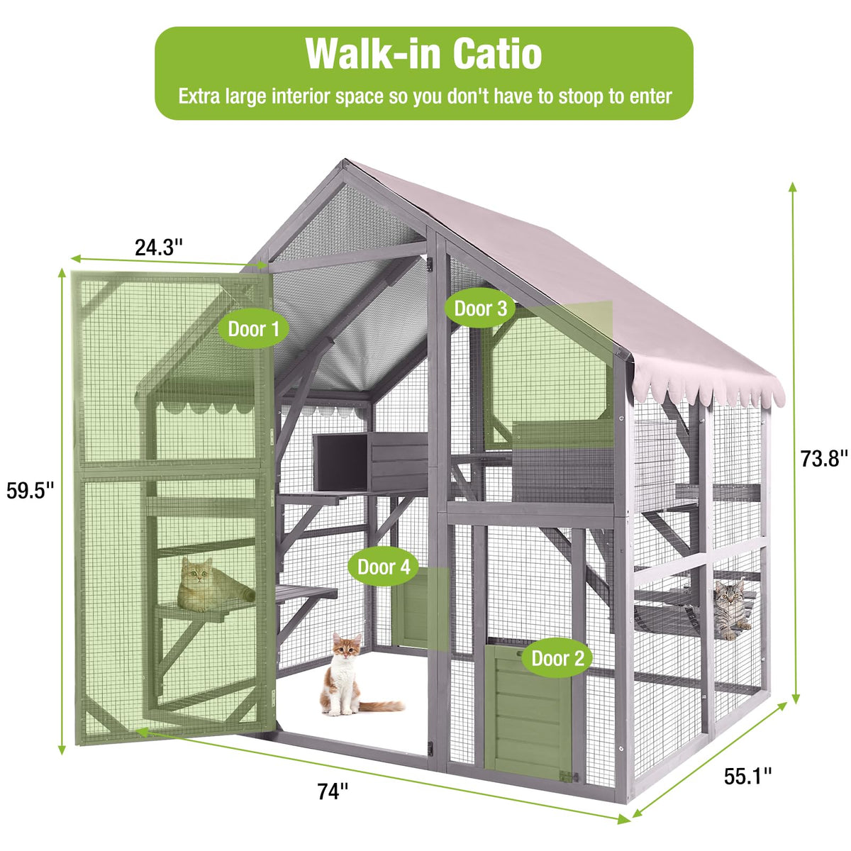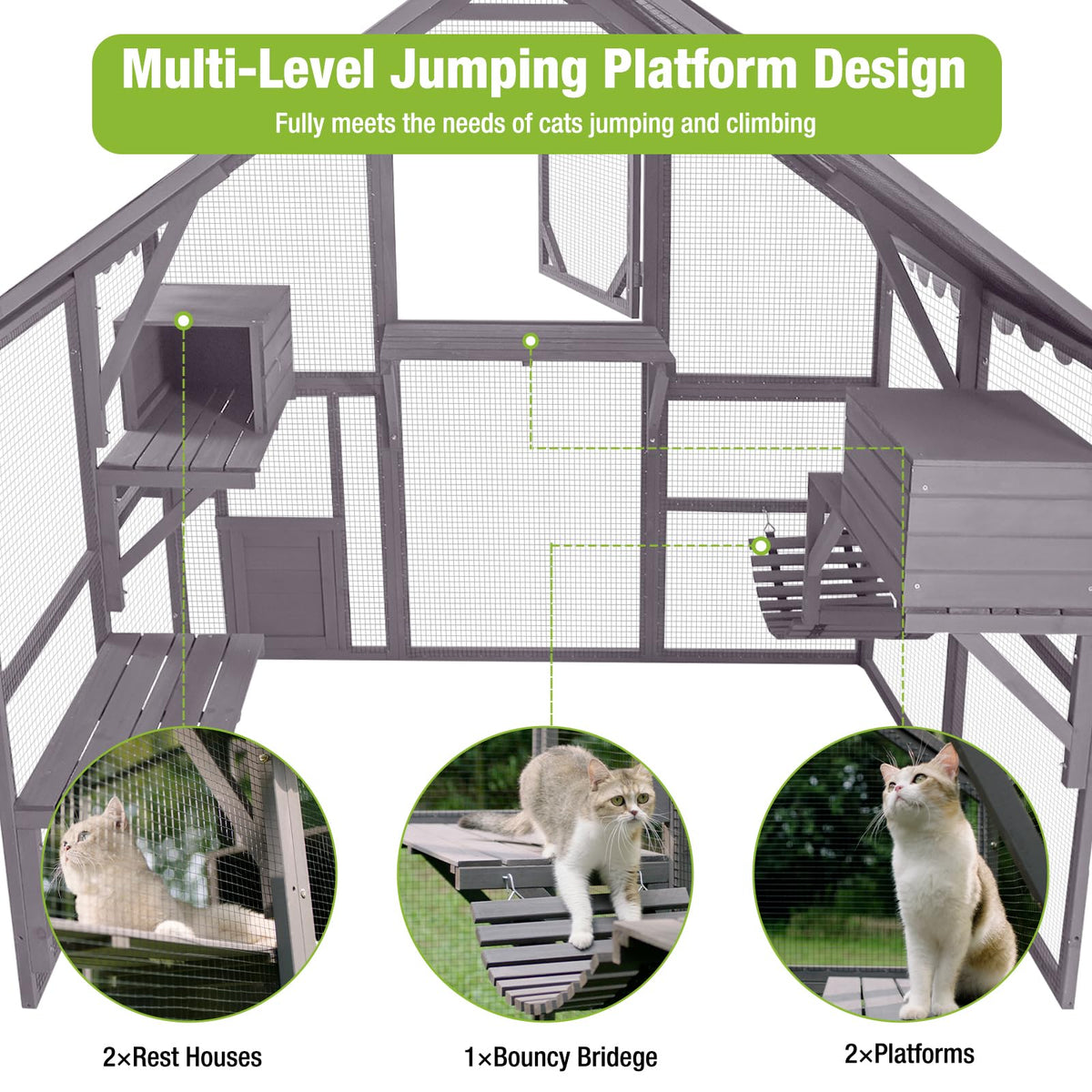Gutinneen Catio Outdoor Cat Enclosures Wooden Cat House With Rest Houses, Platforms, Bridge, And Waterproof Uv Cover - 55'' D