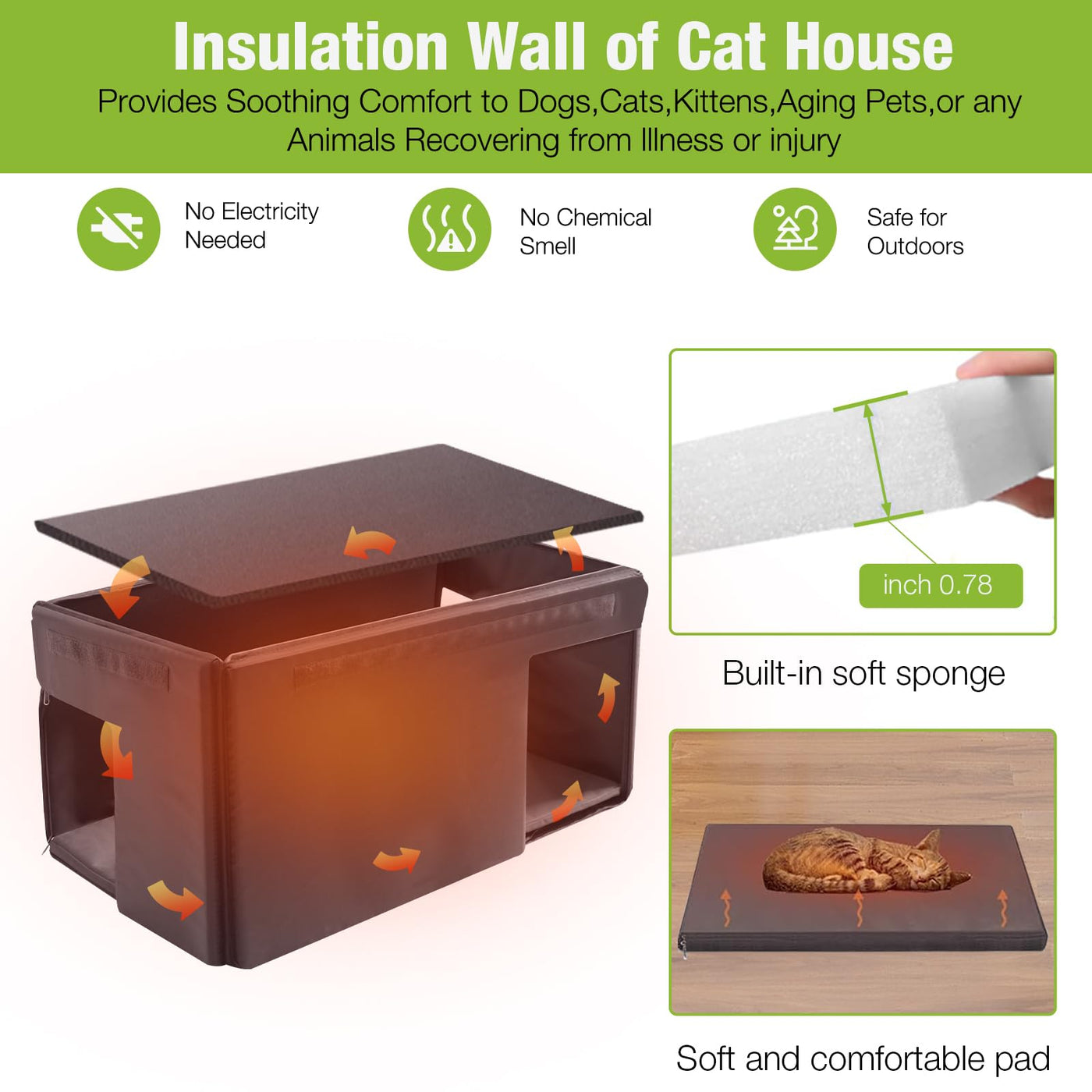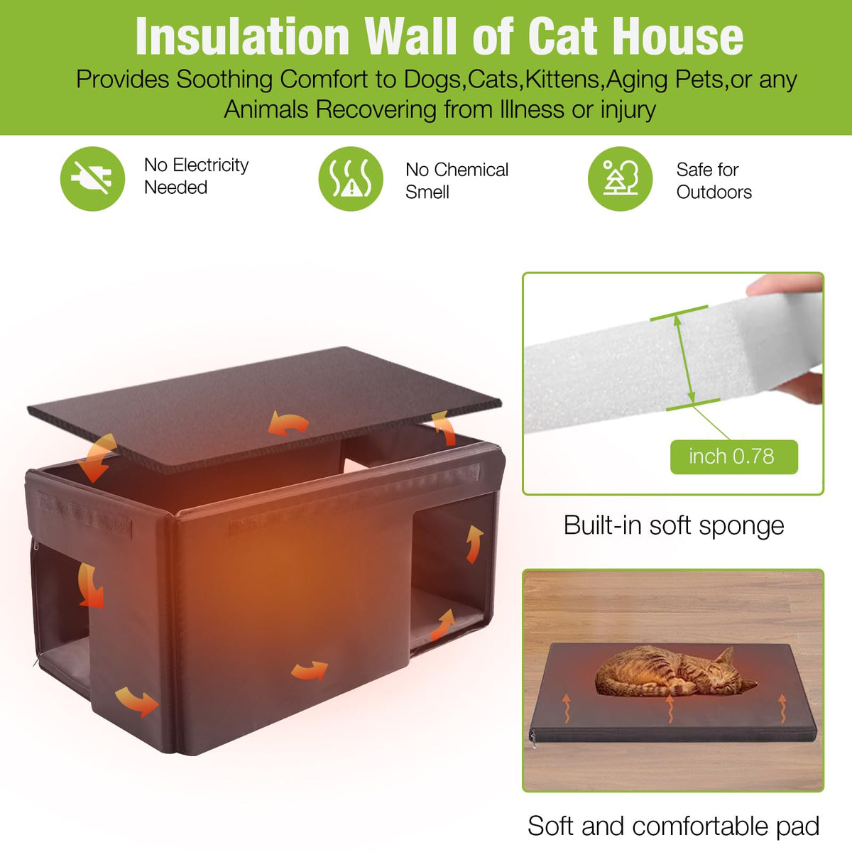 Gutinneen Outdoor Cat House Insulated Kitty Shelter With Liner For Winter Waterproof Cat Cage For Feral Cats