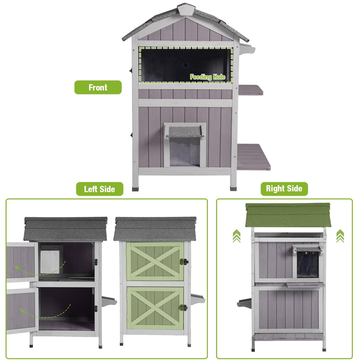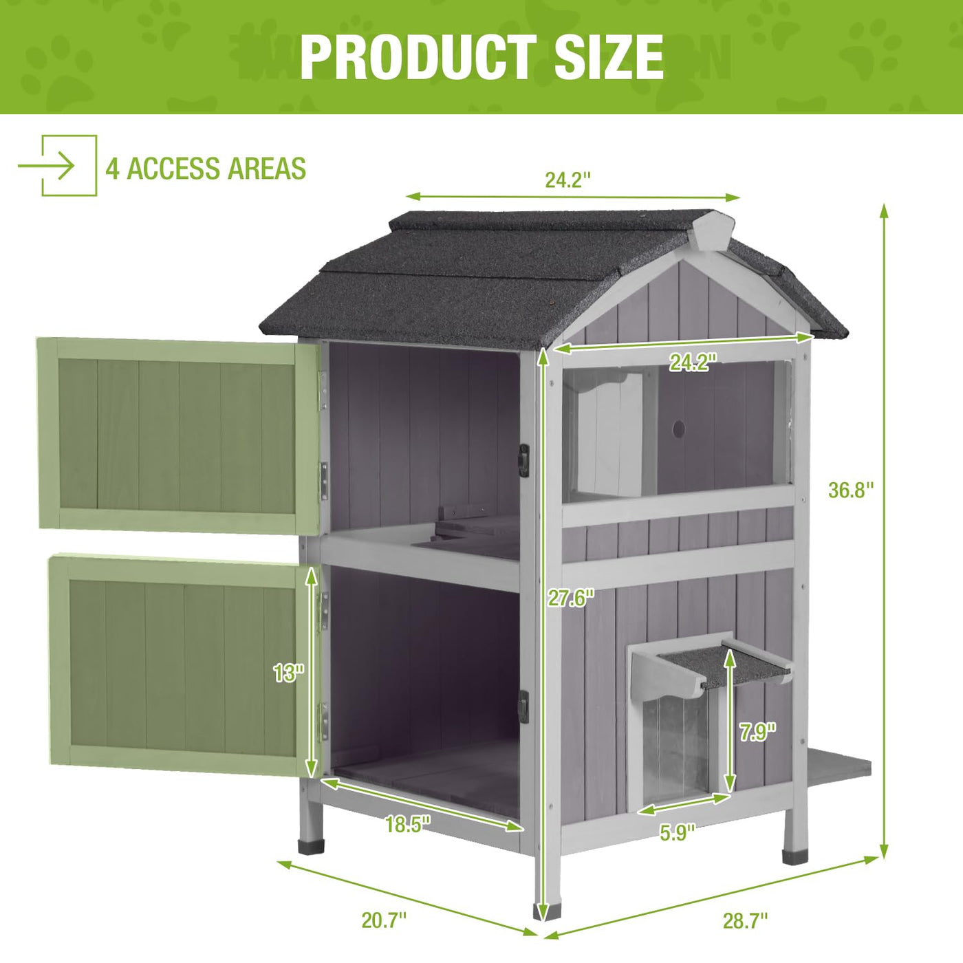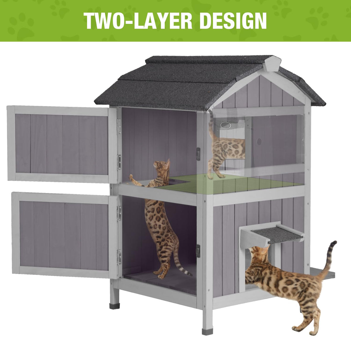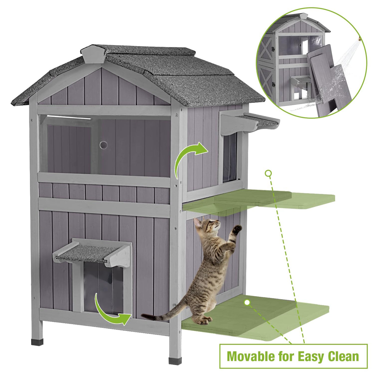 Gutinneen Outdoor Cat House Weatherproof Outside Feral Cat Shelter 2 Story