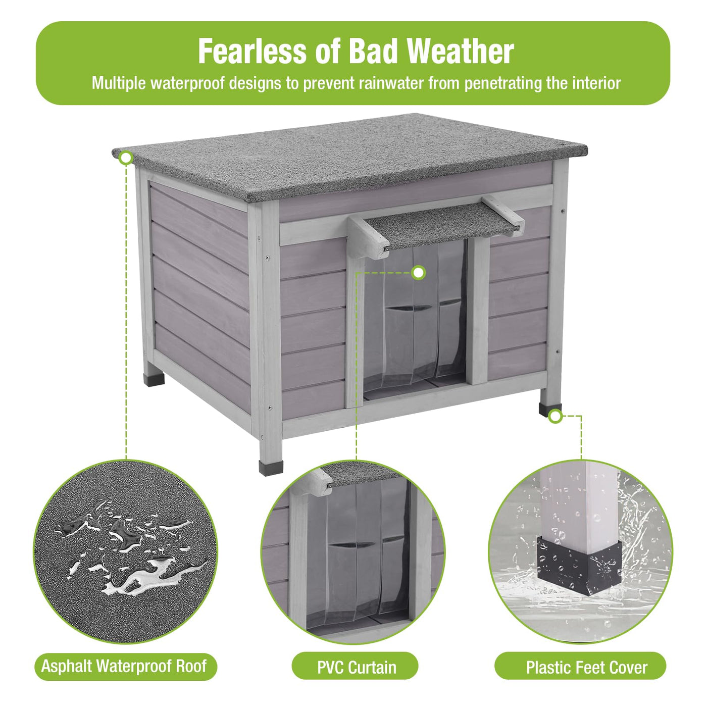 Gutinneen Outdoor Cat House With Insulated Wooden Outside Feral Cat Shelter Rabbit Hutch Bunny Cage Guinea Pig Habitat Weatherpr