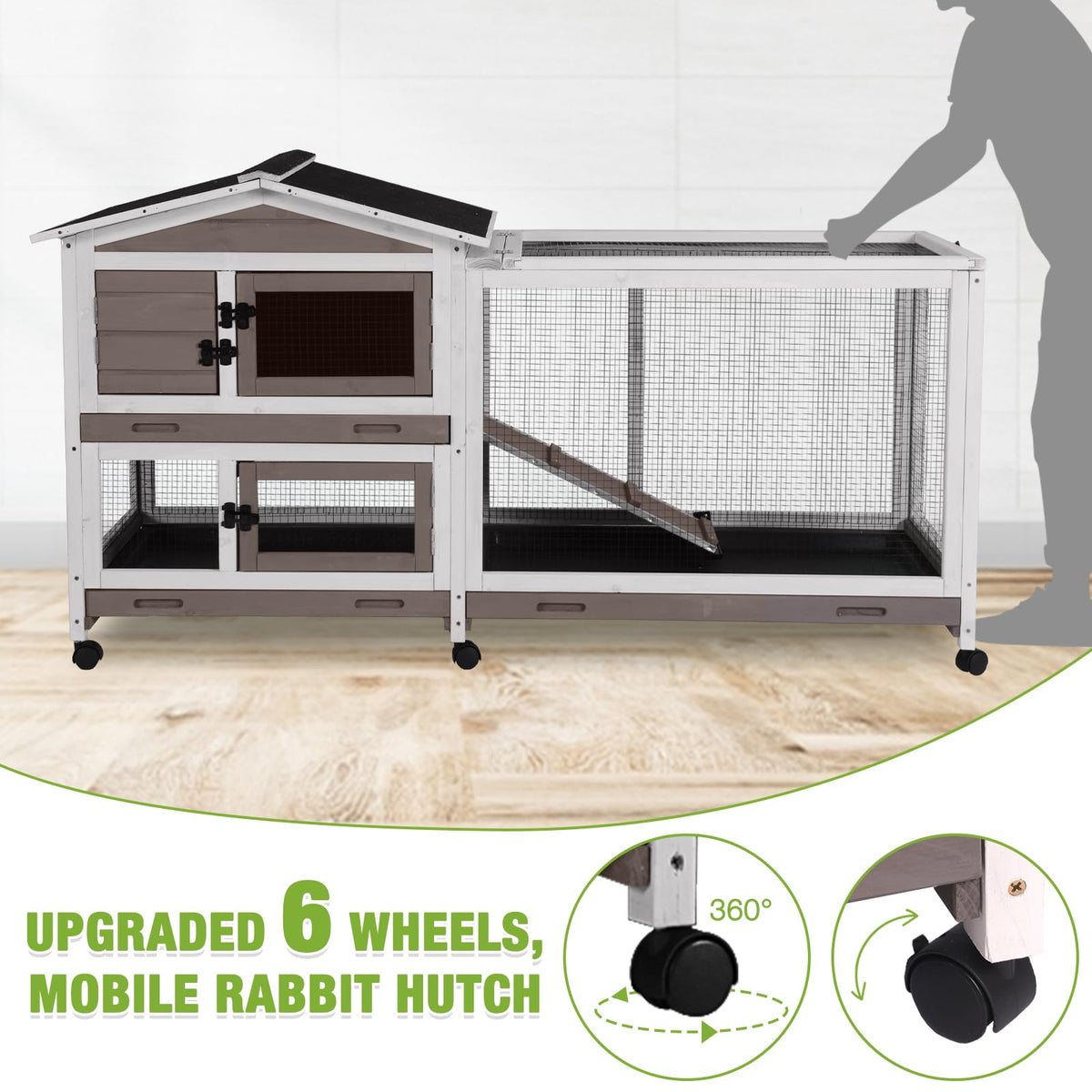 Gutinneen Rabbit Hutch Indoor With Chew-Proof Ramp, 62'' L Wooden Rabbit Cage With 6 Casters, Bunny Cage With 2 Trays And 2 Stor