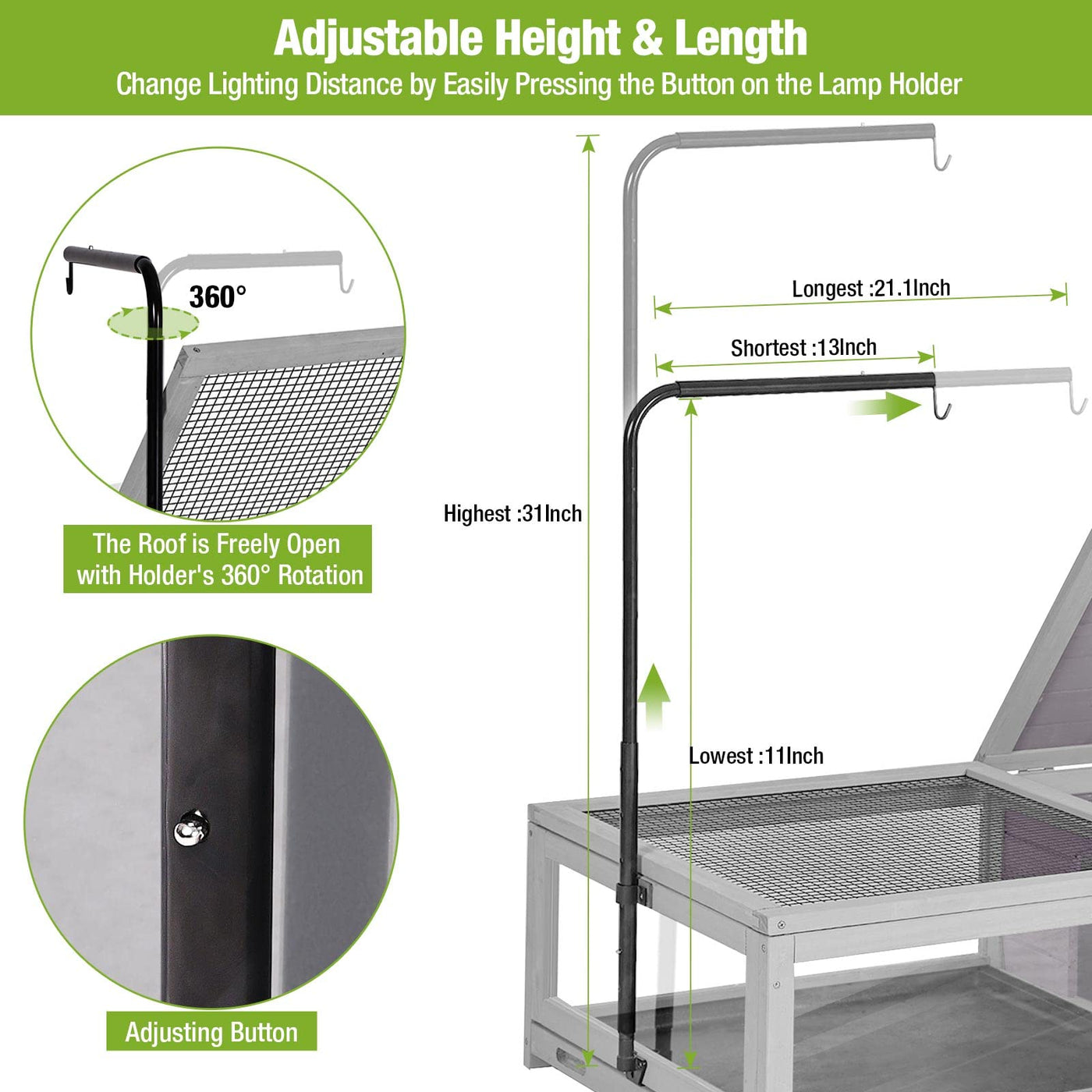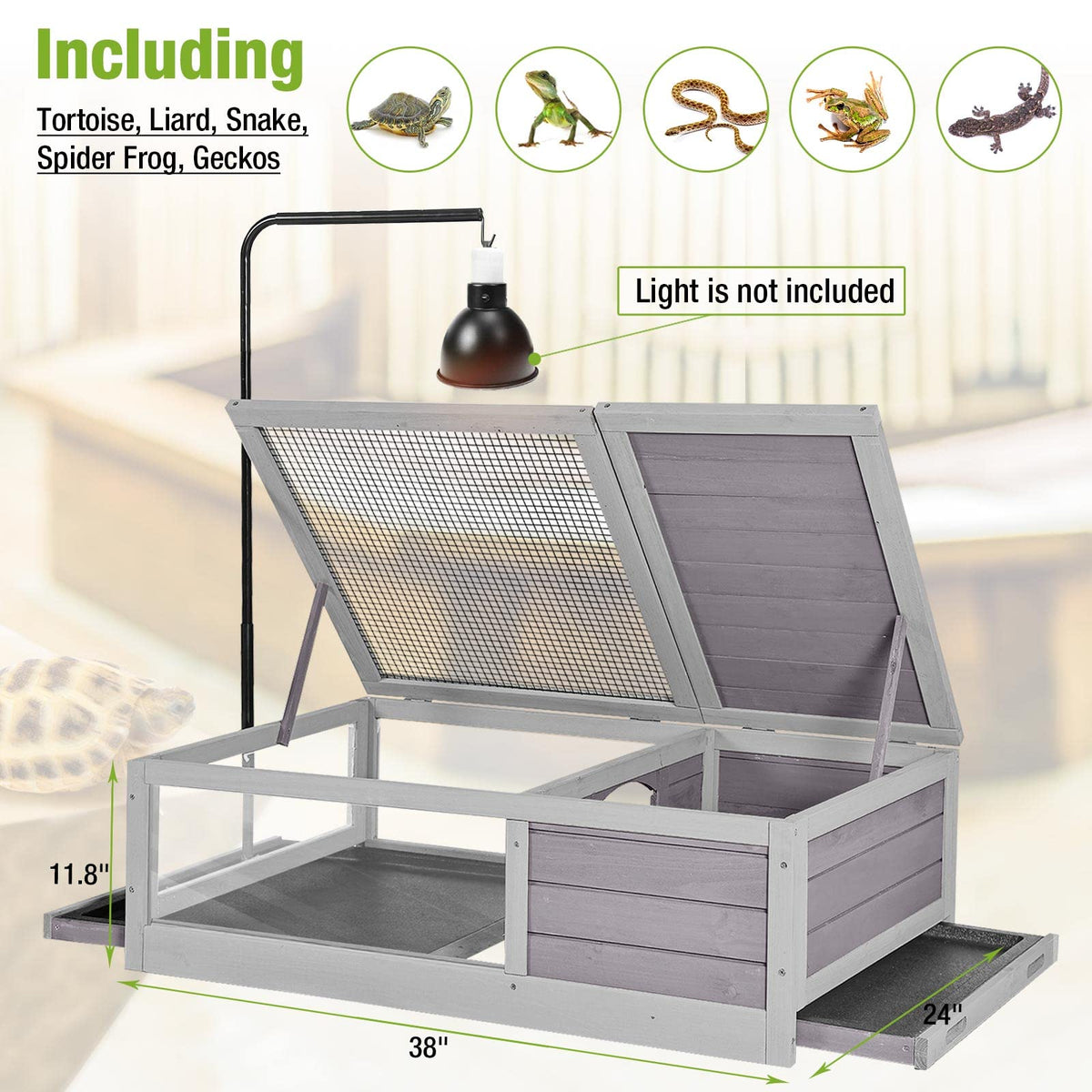 Gutinneen Tortoise Habitat Indoor Tortoise Enclosure With Adjustable Reptile Light Stand Large Wooden Turtle Cage With Two Trays