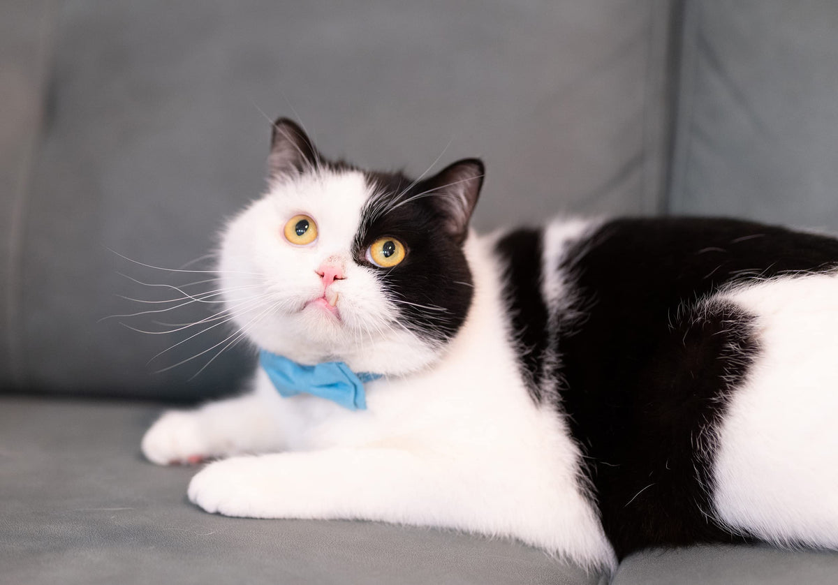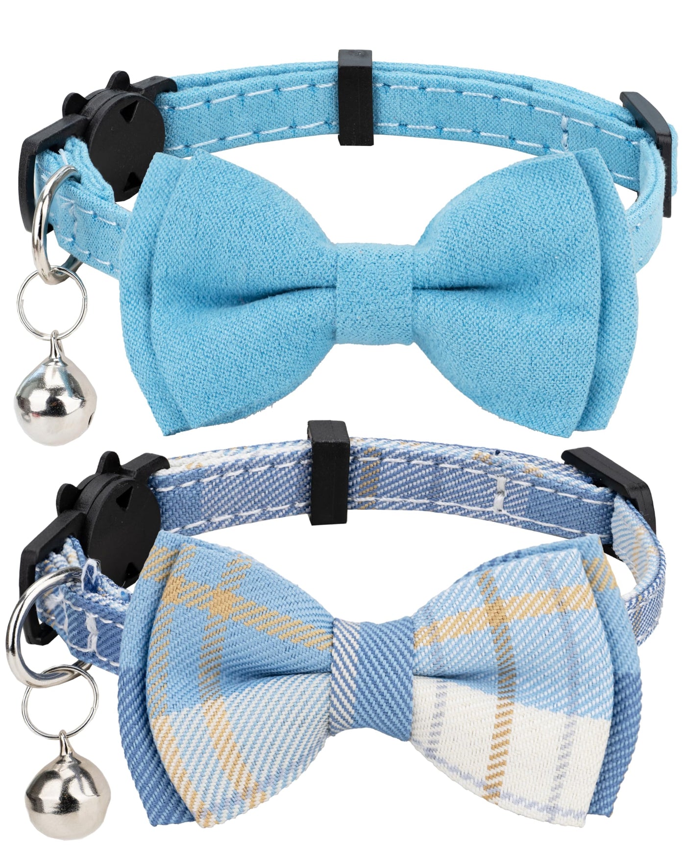Gyapet Cat Collar Breakaway Bowtie Safety With Bell Adjustbale Kitten Puppy Solid Plaid Color Set J-[2Pcs] Blue