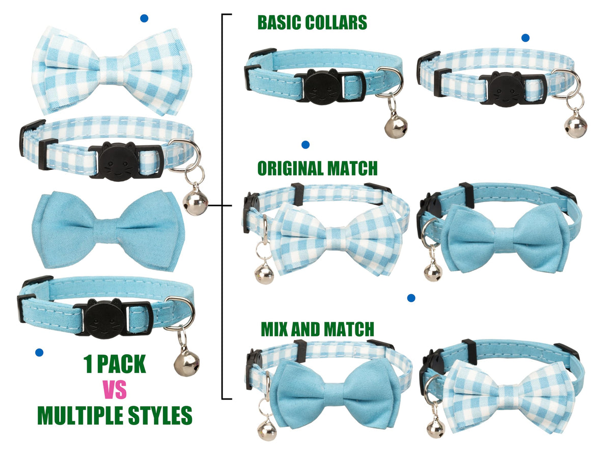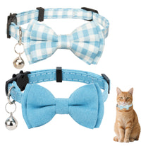 Gyapet Cat Collar Breakaway With Bell Boy Girl Kitten Bow Tie Safety Plaid Solid Color Set Cute Soft Summer [2Pcs] Blue