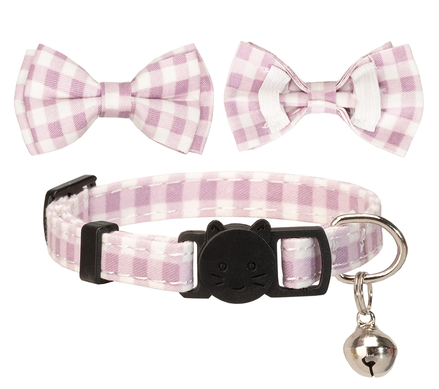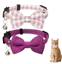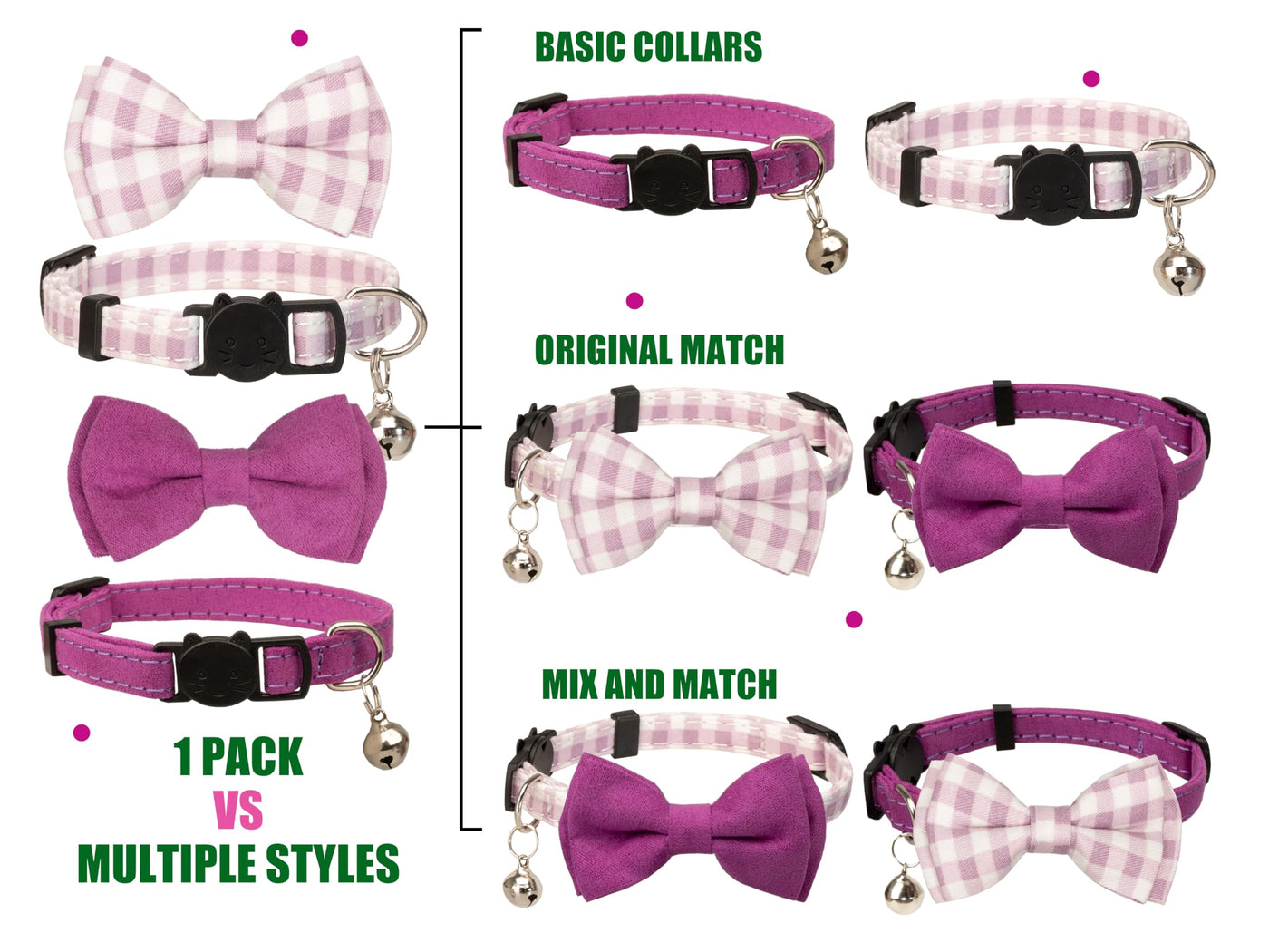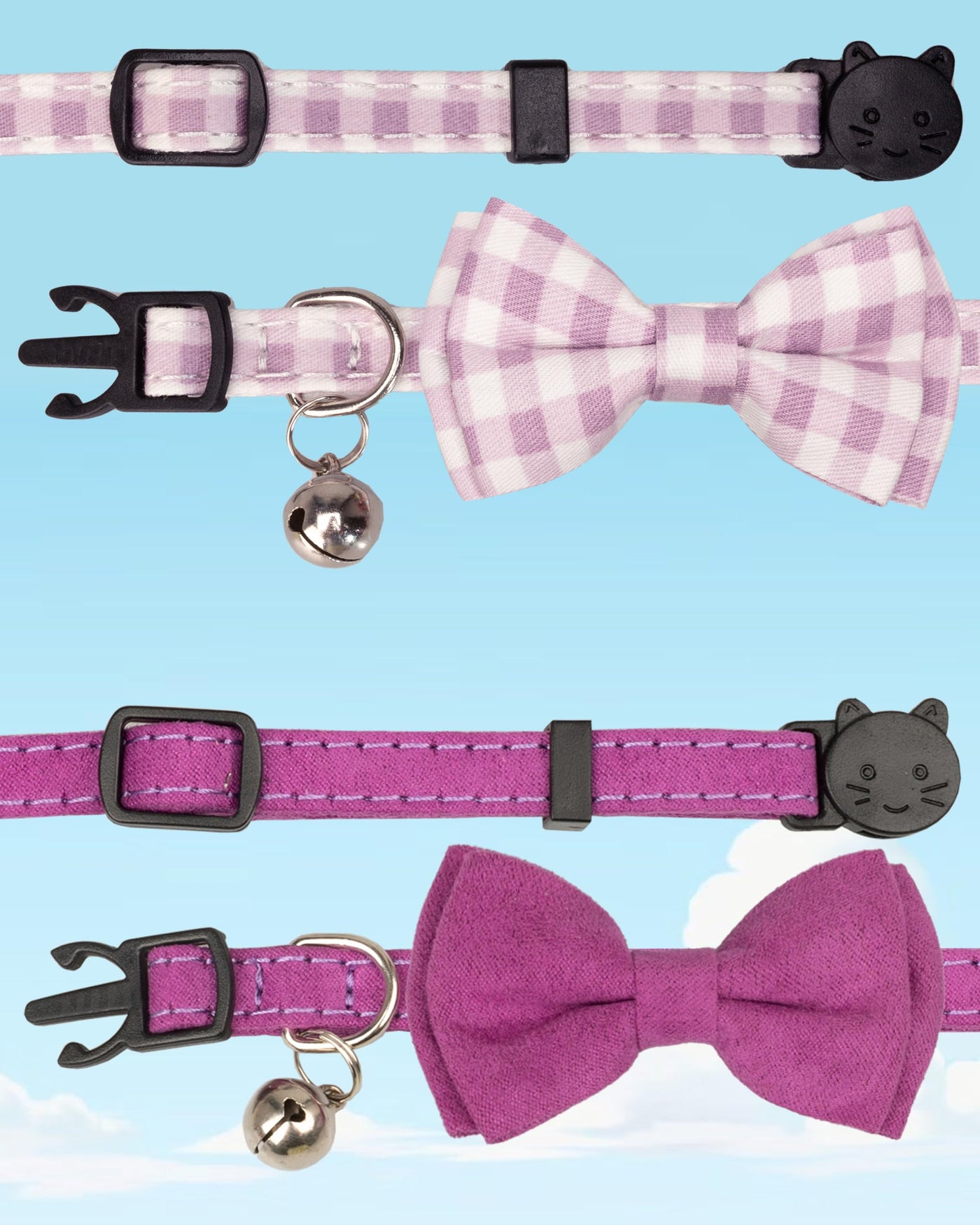 Gyapet Cat Collar Breakaway With Bell Boy Girl Kitten Bow Tie Safety Plaid Solid Color Set Cute Soft Summer [2Pcs] Purple
