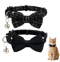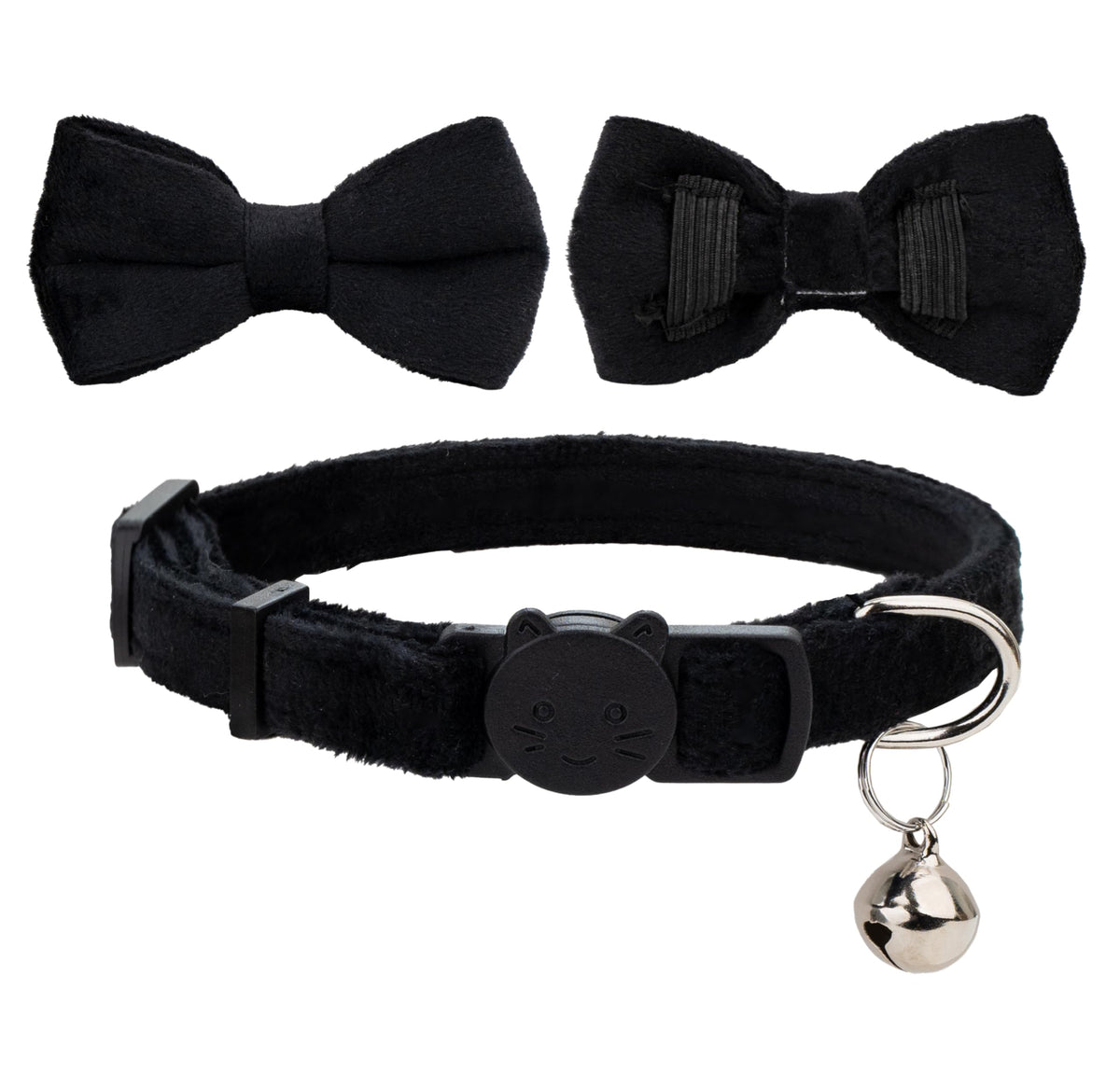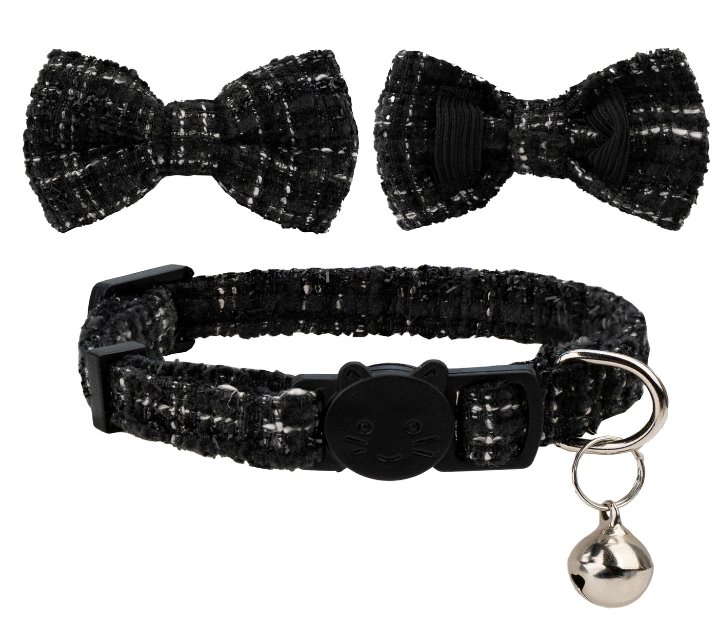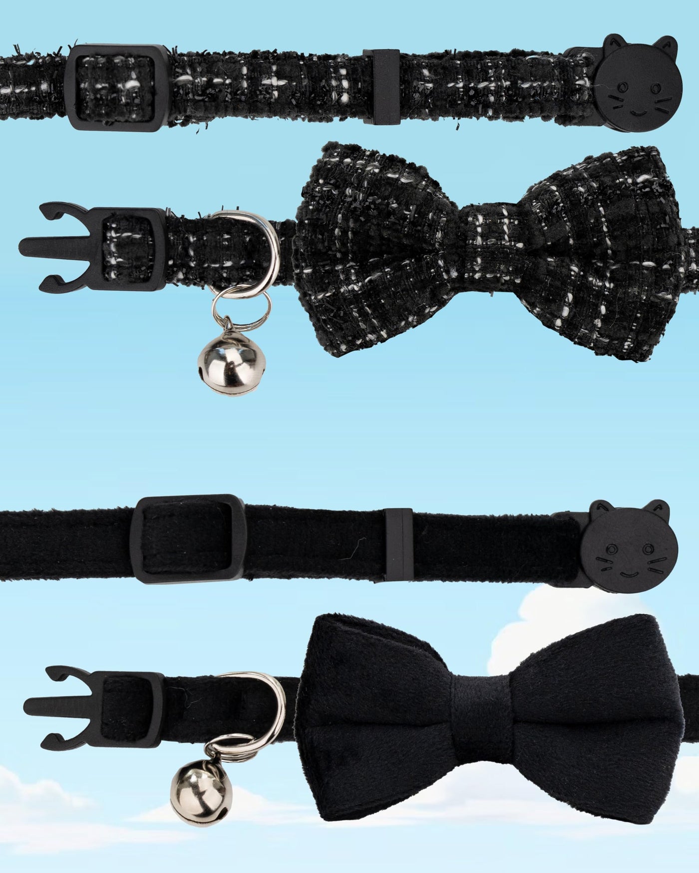 Gyapet Cat Collar Breakaway With Bell Boy Girl Kitten Bow Tie Safety Plaid Solid Color Set Cute Soft Summer B-[2Pcs] Black
