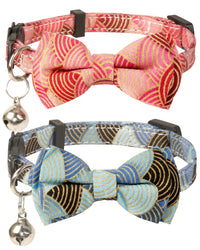 Gyapet Collar For Cat Pet Breakaway With Bell Bowtie Detachable Bow Adjustable Safety Kitten Puppy Girl Boy 2Pcs Kimono-Blue & P