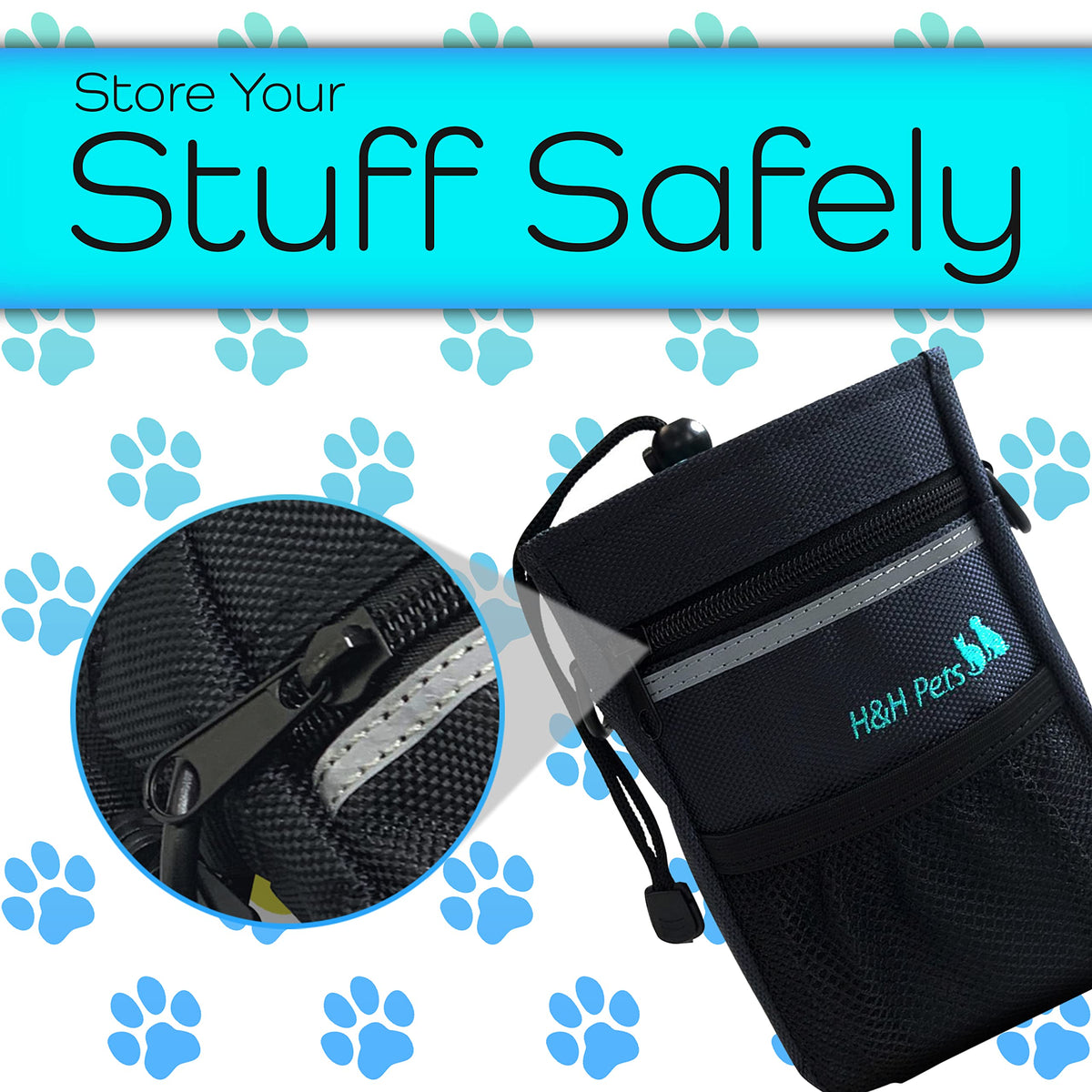 Our dog treat pouch bags (small pouch) is ultra-lightweight and will keep you company through all the memorable and precious times you and your pet spend together. Whether you and your pet are going for walks, runs, adventures, or training, this bag can accommodate any necessary items you need in an intelligently designed space. The bag is measured 5 x 7 x 2 and has 1 large space to place dog treats with drawstring closure, 1 zipper pocket for cell phone or other accessories, 1 mesh net pocket, and 1 waste bag dispenser space. However, you can definitely alter the functionality of each space according to your needs.H&H Pets Dog Treat pouch bags also comes with a multi-purpose strap that lets you wear the bag 3 ways. You could either wear it like a cross body bag, waist bag or simply buckle the bag on your belt using the straps and buckle on the back of the bag. We use high quality and durable fabrics throughout the bag, which means you can machine-wash this bag without worrying about tearing the fabric. In addition, you could also hand washing this bag by just taking out the inline fabric of the bag for fast drying time. We do suggest air-drying this bag, as the premium plastic hardware could be damaged in the dryer. Every part of the bag is designed and tested in Los Angeles, California by pet owners to provide you with the best product and experience.Key Feature: Easy to clean 3 ways to wear (dog accessories) 1 roll of the waste bag included Stores your smartphone, keys, cash Perfect for dog and puppy training classes (pet supplies for dogs).SELLERS NOTE:If you have any questions regarding this dog treat pouch, please contact us at this link:https://www.amazon.com/ss/help/contact/?marketplaceID=ATVPDKIKX0DER&sellerID=A370ZNJ9C9XTDH