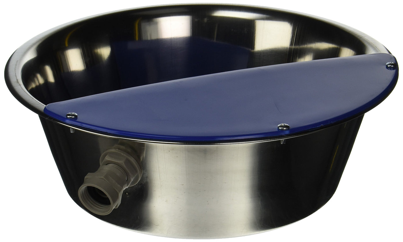 Q: What materials are used in the construction of the waterer?A: The waterer is made from heavy-duty stainless steel, which offers durability and resistance to rust, while the high-density polypropylene cover provides additional protection and stability.