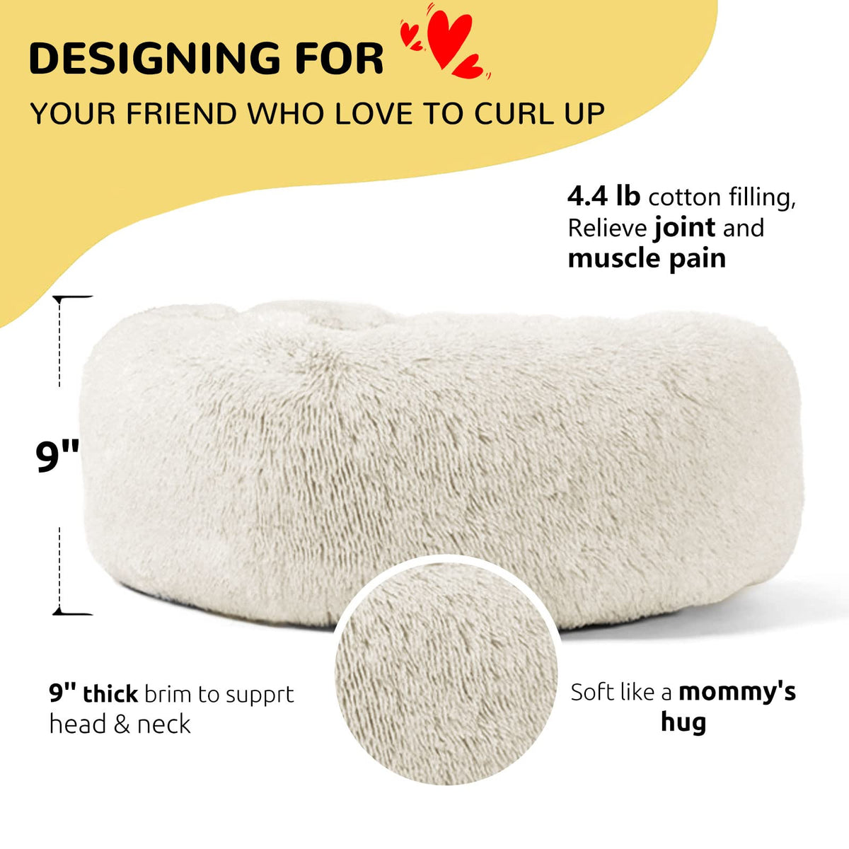 Our Hachikitty Donut Dog Bed Is Designed To Keep Your Furry Friend Warm And Comfortable During The Colder Months. The Longer And Thicker Shag Vegan Fur Provides A Secure Feeling, Just Like Mommy'S Fur.