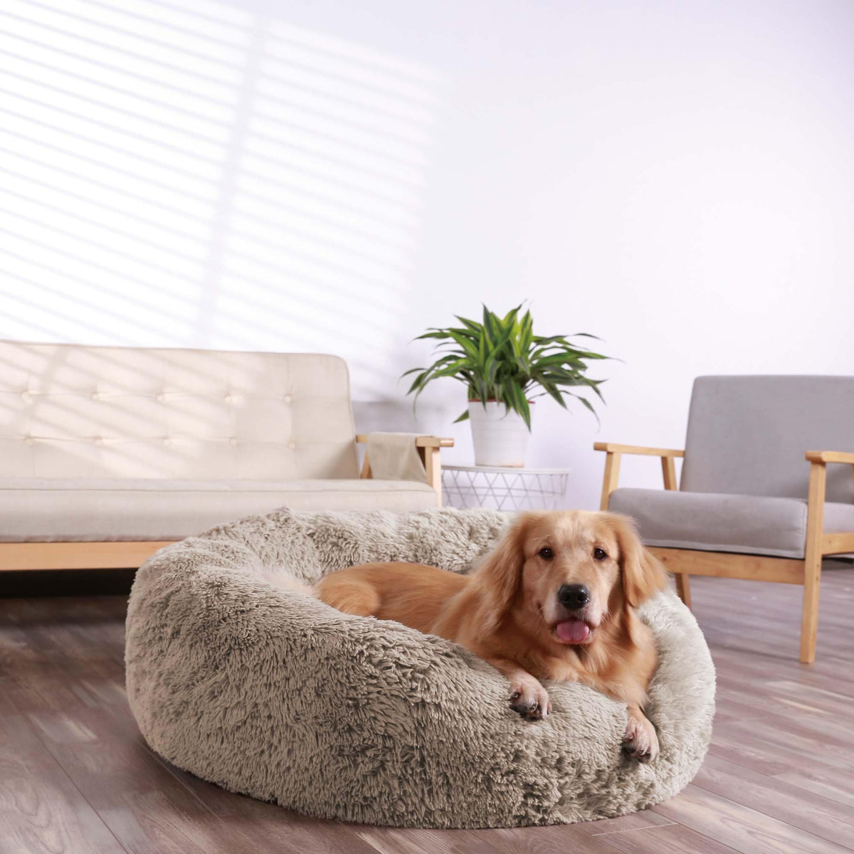Hachikitty Calming Donut Cuddler Dog Bed, Indoor Puppy Beds For Large Dogs, Xlarge 36''