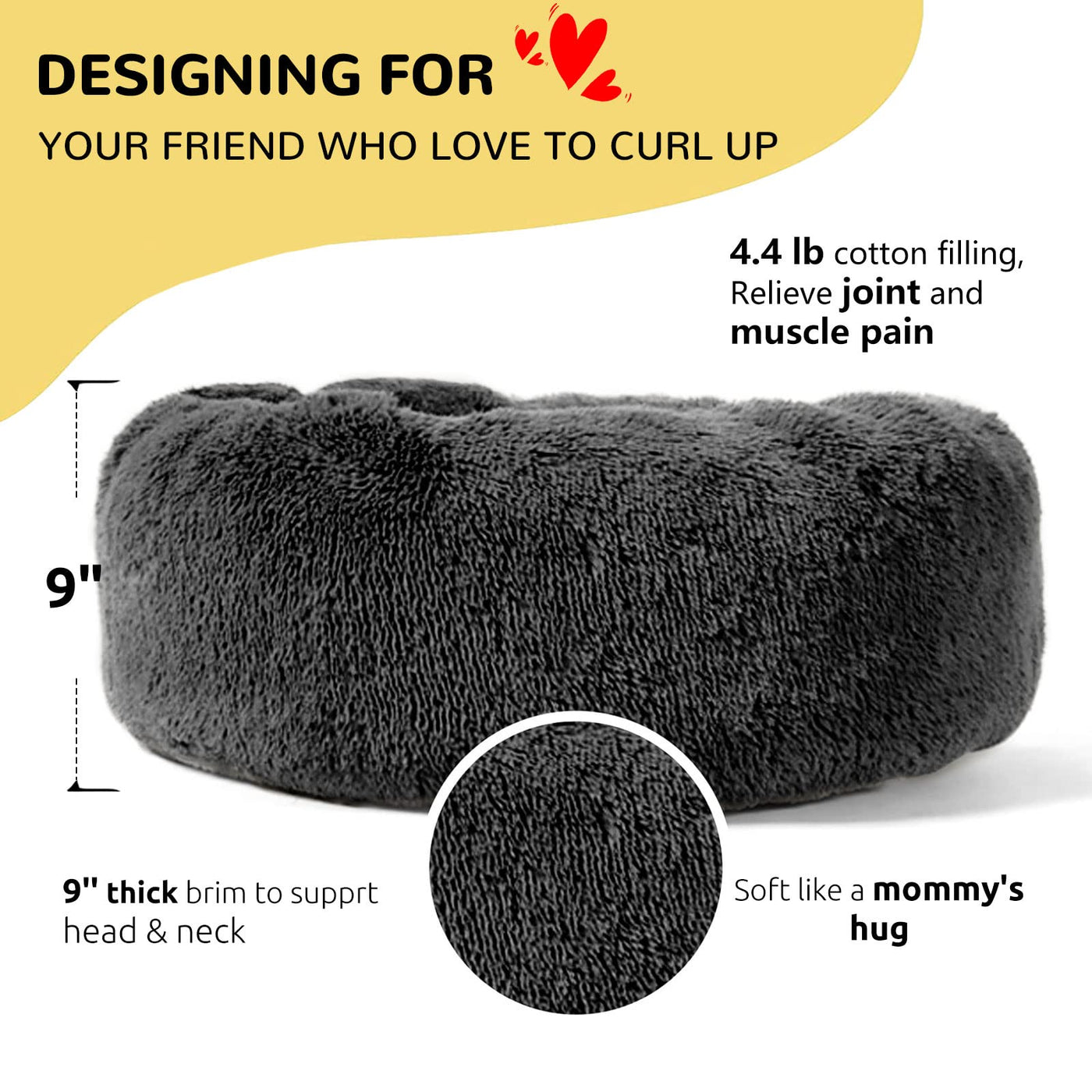 Our Hachikitty Donut Dog Bed Is Designed To Keep Your Furry Friend Warm And Comfortable During The Colder Months. The Longer And Thicker Shag Vegan Fur Provides A Secure Feeling, Just Like Mommy'S Fur.