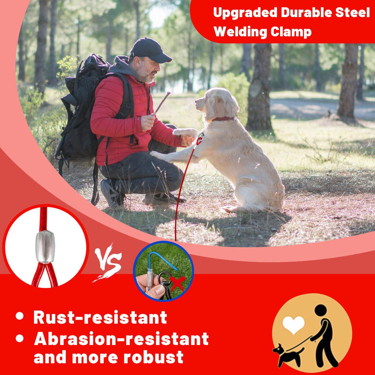 Haiyuan Dog Tie Out Cable 10/15/20/25/30 Ft Dog Runner For Yard Steel Wire Dog Cable With Durable Superior Clips Red Dog Chains For Outside Dog Lead For Large Dogs Up To 165 Lbs