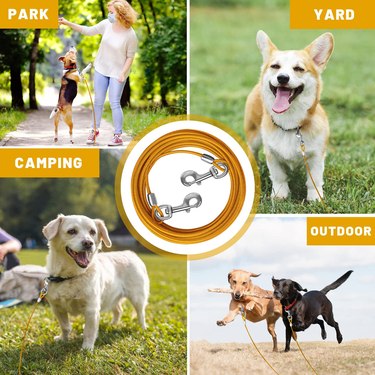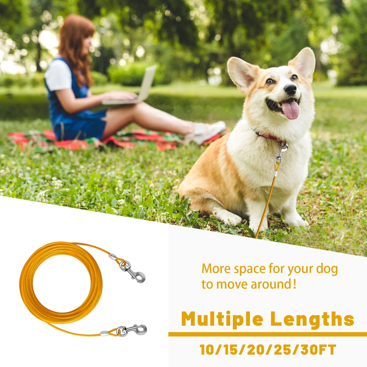 Haiyuan Dog Tie Out Cable 10/15/20/25/30 Ft Dog Runner For Yard Steel Wire Dog Cable With Durable Superior Clips Yellow Dog Chains For Outside Dog Lead For Large Dogs Up To 165 Lbs