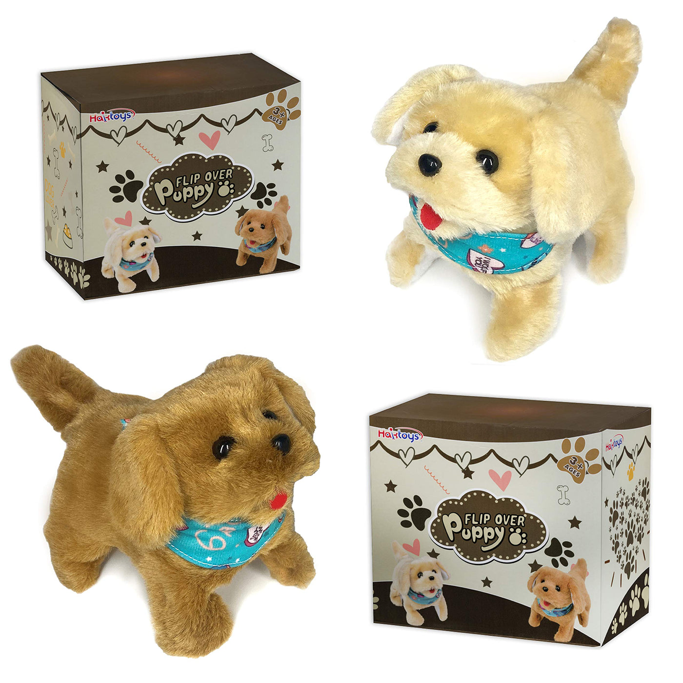 Haktoys Flip Over Puppy Battery Operated Plush Dogs That Somersault Walk Sit And Bark - 2 Premium Quality Toy Puppies For Animal