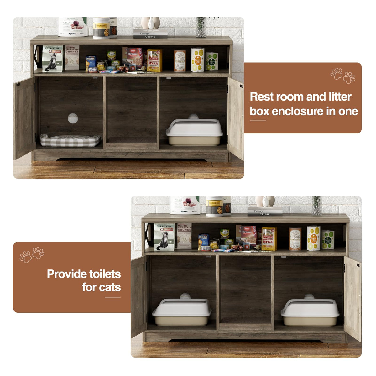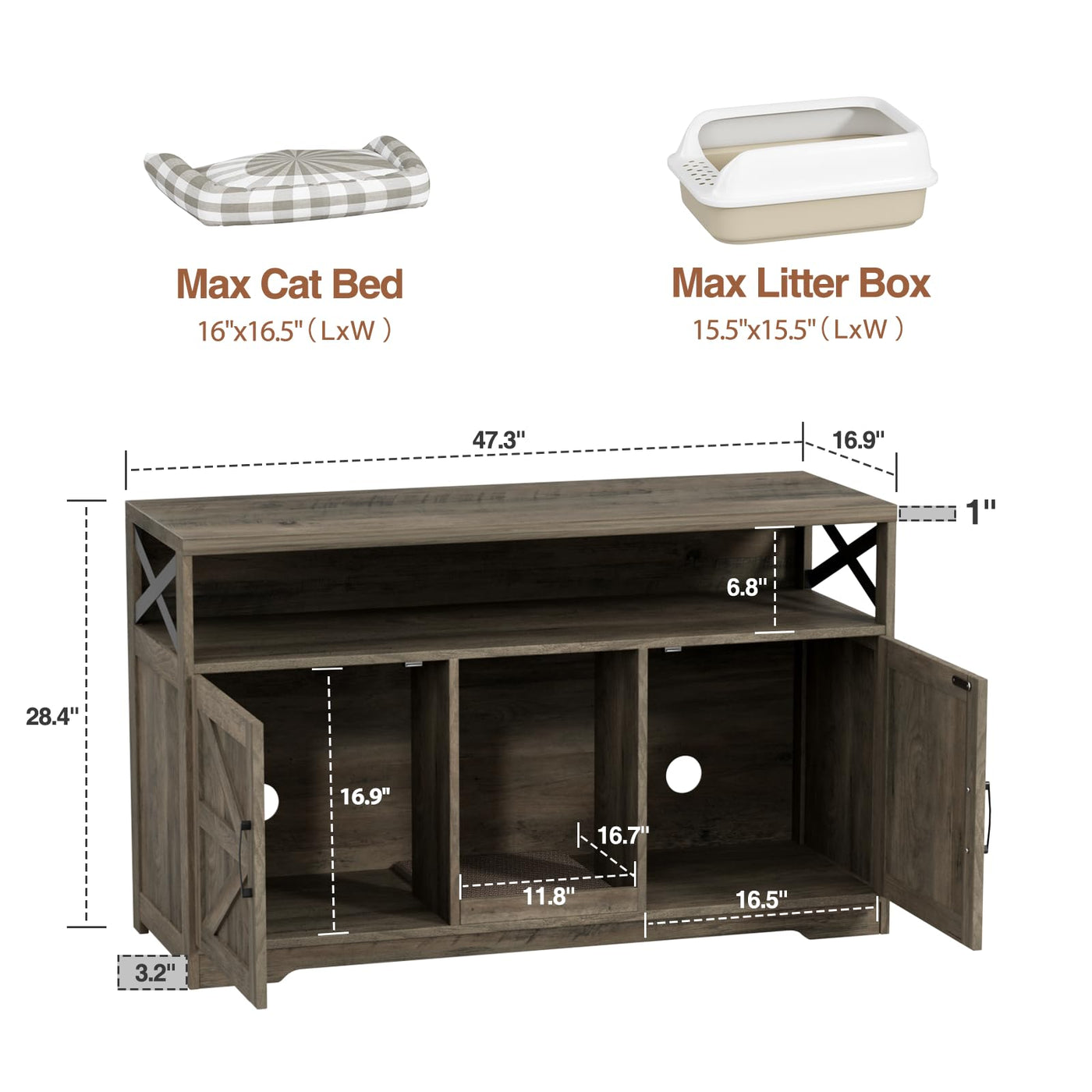 Halitaa Cat Litter Box Enclosure For 2 Cats, 47'' Double Hidden Litter Box Furniture With Scratch Pad, Farmhouse Indoor Litter B