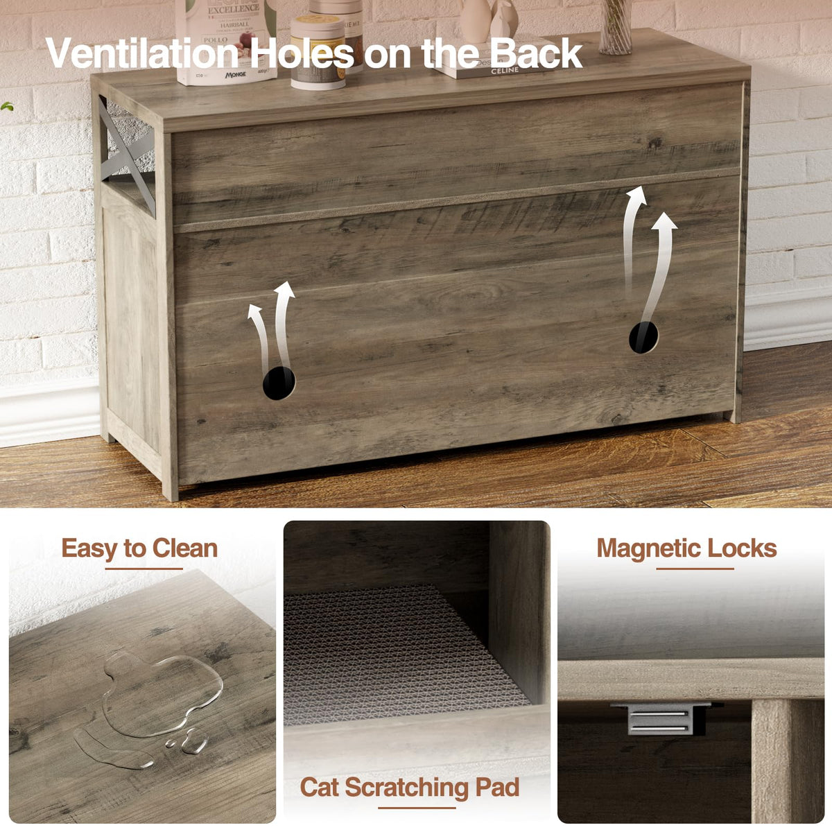 Descriptiontransform Your Home With Our Country-Style Cat Litter Enclosure, Where Functionality Meets Rustic Charm. Designed With A Sleek Metal Crossbar And A Rustic Finish, This Litter Box Enclosure Seamlessly Integrates Into Various Home D Cors, Turning A Practical Necessity Into A Stylish Feature. Your Feline Friend Will Appreciate The Double-Door Design That Provides Privacy, While The Ventilation Holes Ensure A Fresh And Odor-Free Environment. The Built-In Scratch Pad At The Entrance Offers Your Cat A Perfect Spot To Sharpen Their Claws And Prevents Litter From Being Tracked Around Your Home, Keeping It Tidier. The Winding Entry Path Caters To Your Cat'S Natural Curiosity And Love For Exploring. With Ample Storage Space, Including A Spacious Countertop And Open Storage Compartments, This Multifunctional Piece Can Also Serve As A Pet House, End Table, Or Storage Cabinet, And Is An Ideal Spot For Small Pets To Rest And Play. Assembly Is A Breeze With All Necessary Tools, Parts, And Instructions Included. We Recommend Having Two People For A Faster And More Convenient Installation Process.