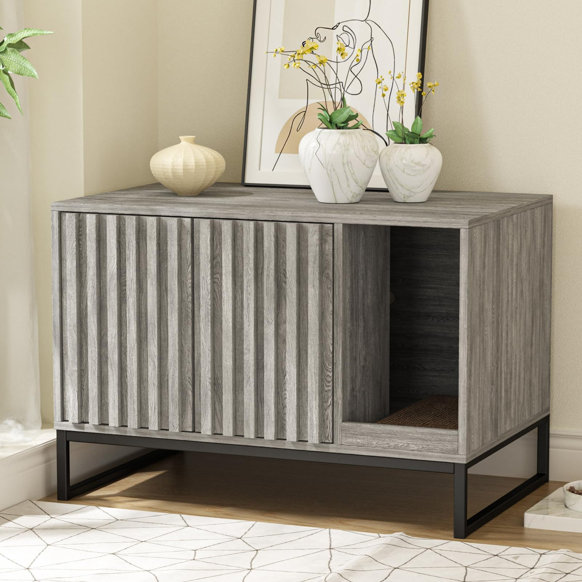 Halitaa Litter Box Enclosure, Modern Cat Litter Box Enclosure Furniture Hidden Litter Box With Cat Scratch Pad, Cat Washroom Cat