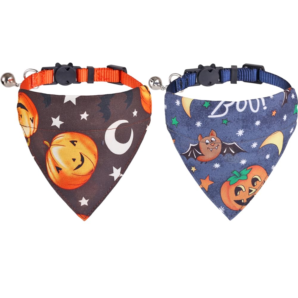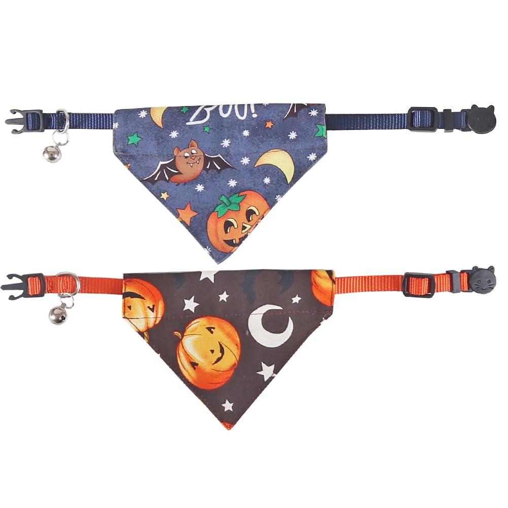 Halloween Cat Collars Breakaway With Bandana Bell Pet Kitten Adjustable For Small Dog Puppies Girl Boy