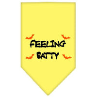Q: What makes this bandana a good choice for Halloween?A: With its fun 'Feeling Batty' print and vibrant yellow color, this bandana is a great way to showcase your pet's personality during Halloween festivities.