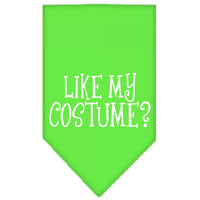 Halloween Pet and Dog Bandana Screen Printed, "Like My Costume?" Lime Green Large