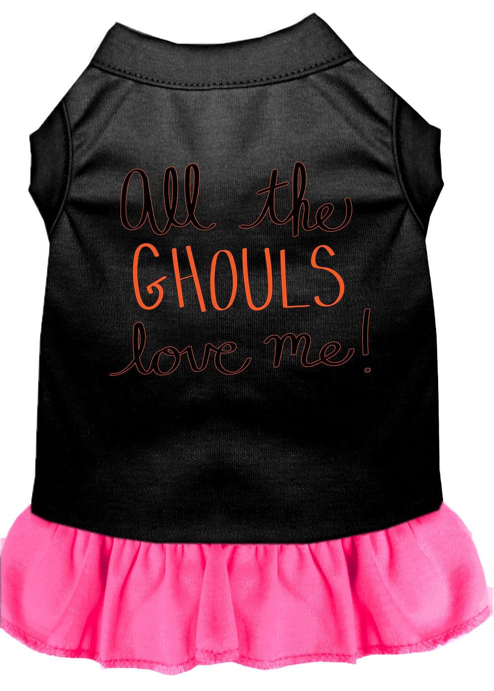 Halloween Pet, Dog & Cat Dress Screen Printed, 'All The Ghouls Love Me' Black W/Bright Pink 3Xl (25-35 Lbs.)