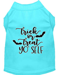 Halloween Pet Dog & Cat Shirt Screen Printed, "Trick Or Treat Yo' Self" Aqua XS (0-3 lbs.)