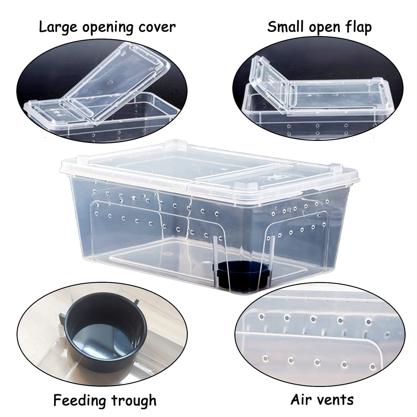 Hamiledyi 2Pcs Reptile Feeding Box Snake Breeding Box Transparent Animal Habitat Cage Portable Plastic Turtle Transport Container For Bearded Dragon Lizard Spider Frog Scorpion Gecko 12.6 X 8.6 X 5.9
