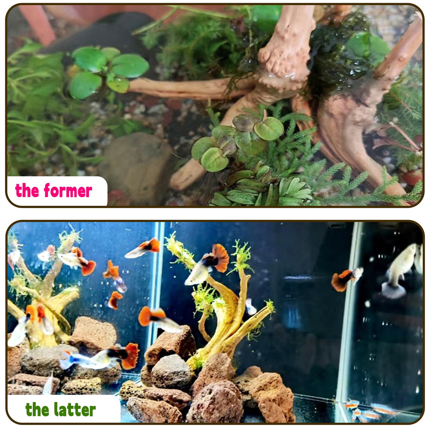 Q: Will the driftwood affect the water quality in my aquarium?A: The driftwood may release tannins into the water, which can slightly tint it and lower the pH levels. It is advisable to monitor your water parameters after adding the driftwood and perform regular water changes to maintain optimal water quality.