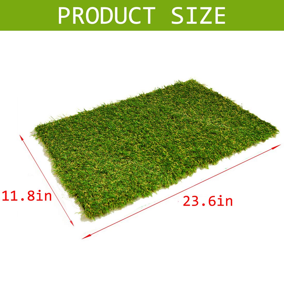 Soft artificial turf, use environmentally friendly materials, green, safe and non-toxic, safe for pets.Realistic soft turf makes it easier to train puppies.these artificial turf are only suitable for puppies and small dogs. It is eco-friendly and non-toxic,Its tone pattern is soft, lush and the thatch looks just like natural grass,providing you with year round green and turf enjoyment, Perfect for Outdoor decor, such as Garden, Lawn, Patio, Landscape, Backyard, Deck, Porch and other outdoor place. Also used as Mat, Carpet in indoor. The size of the artificial lawn is 23.6x11.8 inches,grass height: approximately 1.18 inch. There are 3 pieces grass mat in our package.You can splice any shape you want,Perfect for owners that work long hours or living in an apartment and want to potty train their pets. Realistic soft turf makes it easier to train puppies.these artificial turf are only suitable for puppies and small dogs. package includes:3 x grass mat