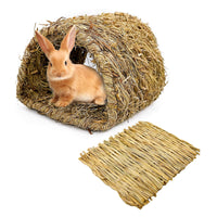 Hamiledyi Bunny Grass Tunnel,Rabbit Grass Bed,Natural Straw Woven Mat Winter Warm Hideaway Hut For Rabbit Gerbil Ferrets Guinea