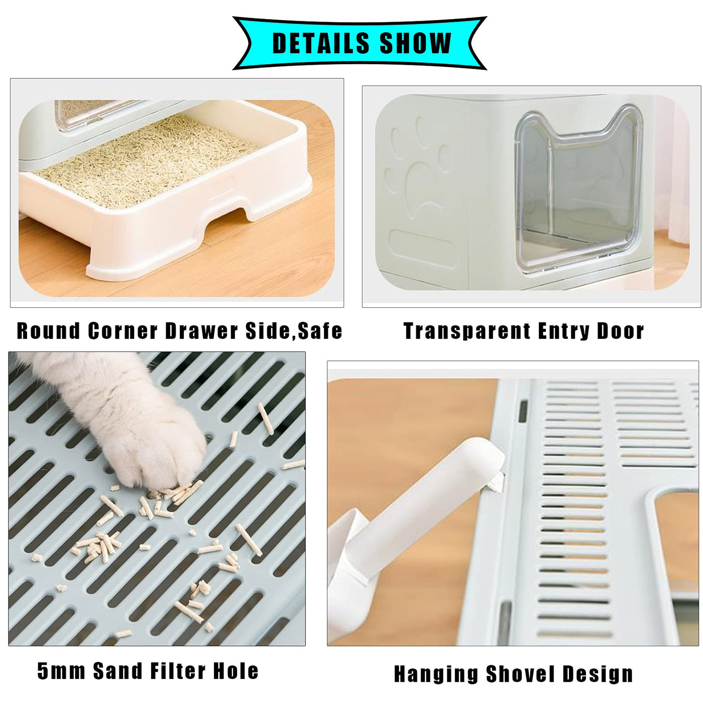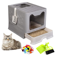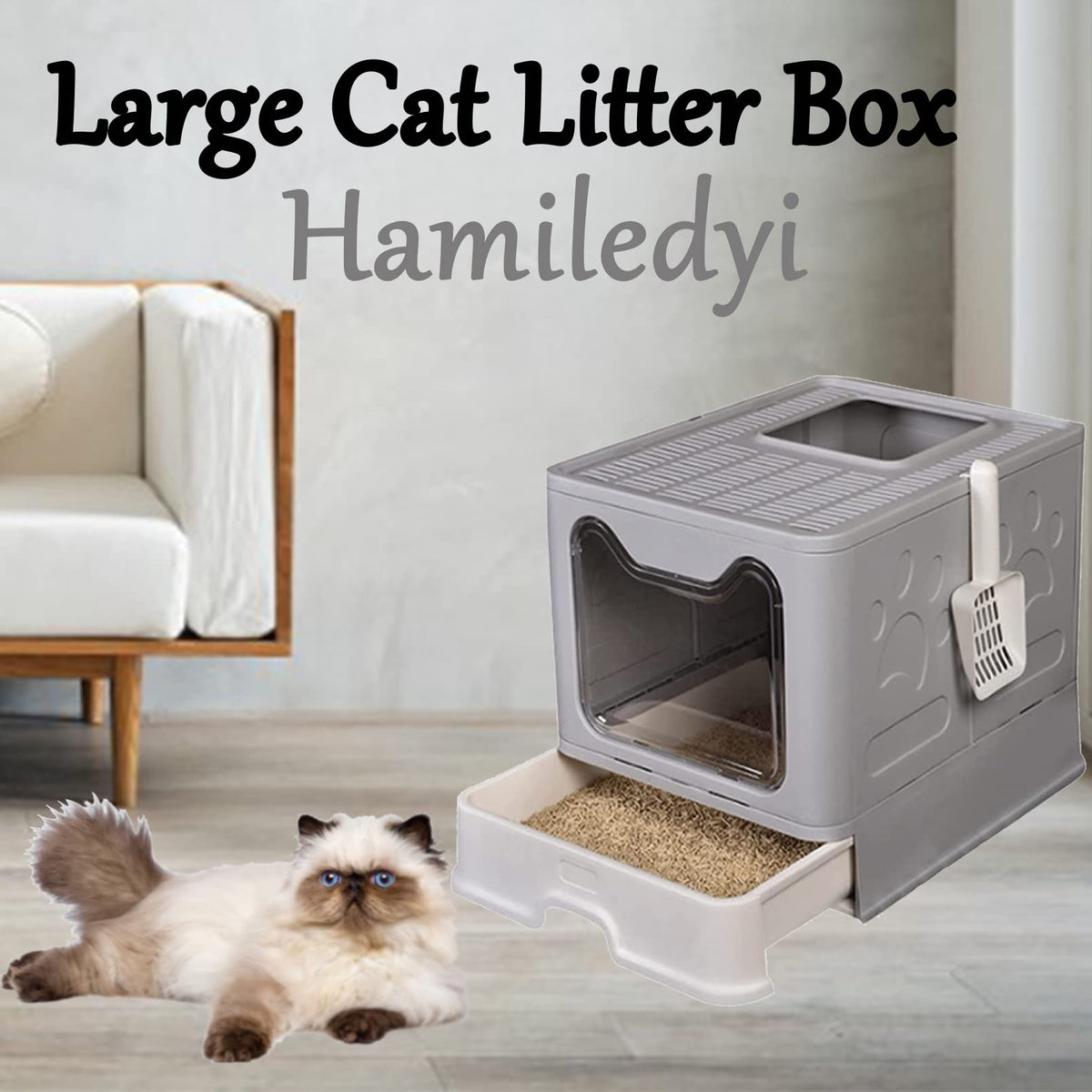 Hamiledyi Foldable Large Cat Litter Box Enclosed Cat Potty With Drawer Top Entry Type Anti-Splashing Cat Toilet With Lid And Cat Litter Scoop No Smell Cat Supplies For Cats And Kittens-Gray