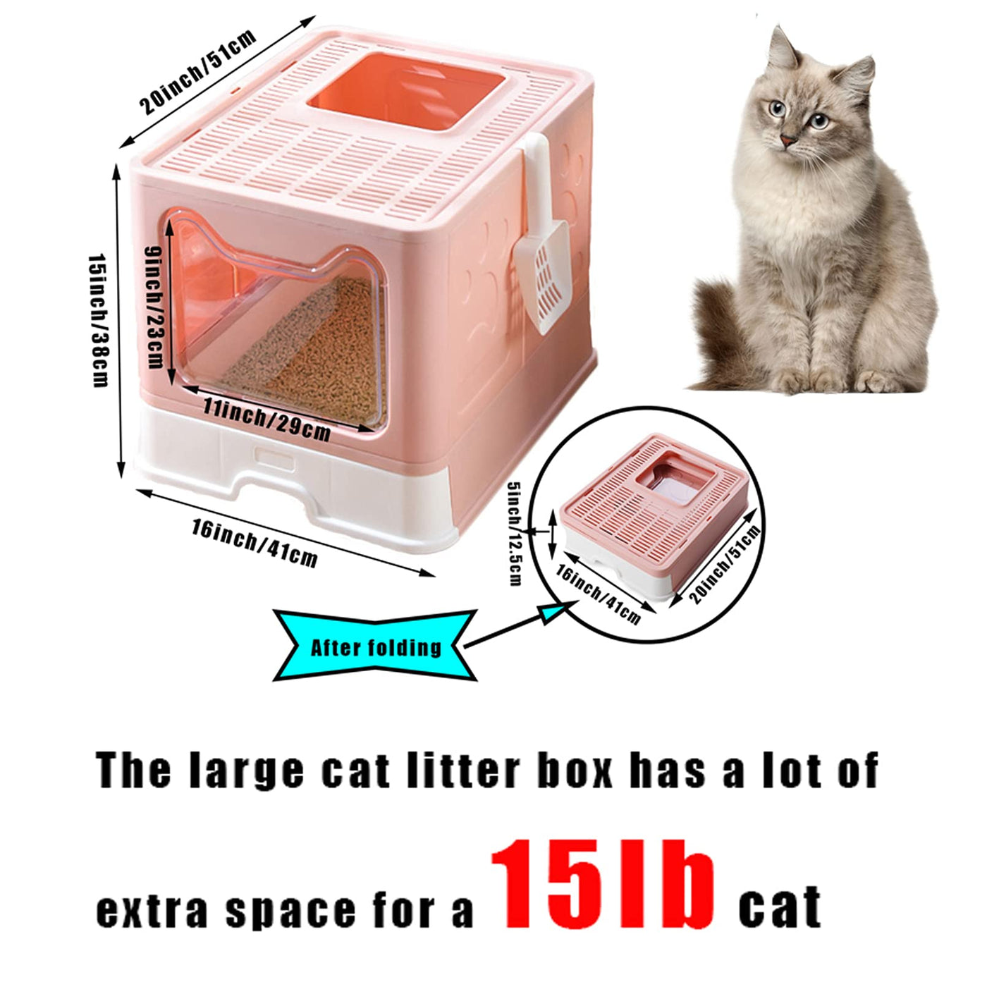 Q: What are the dimensions of the Hamiledyi Foldable Large Cat Litter Box?A: The dimensions of the Hamiledyi Foldable Large Cat Litter Box are 16 inches in length, 20 inches in width, and 15 inches in height, providing ample space for your cat to move around comfortably.