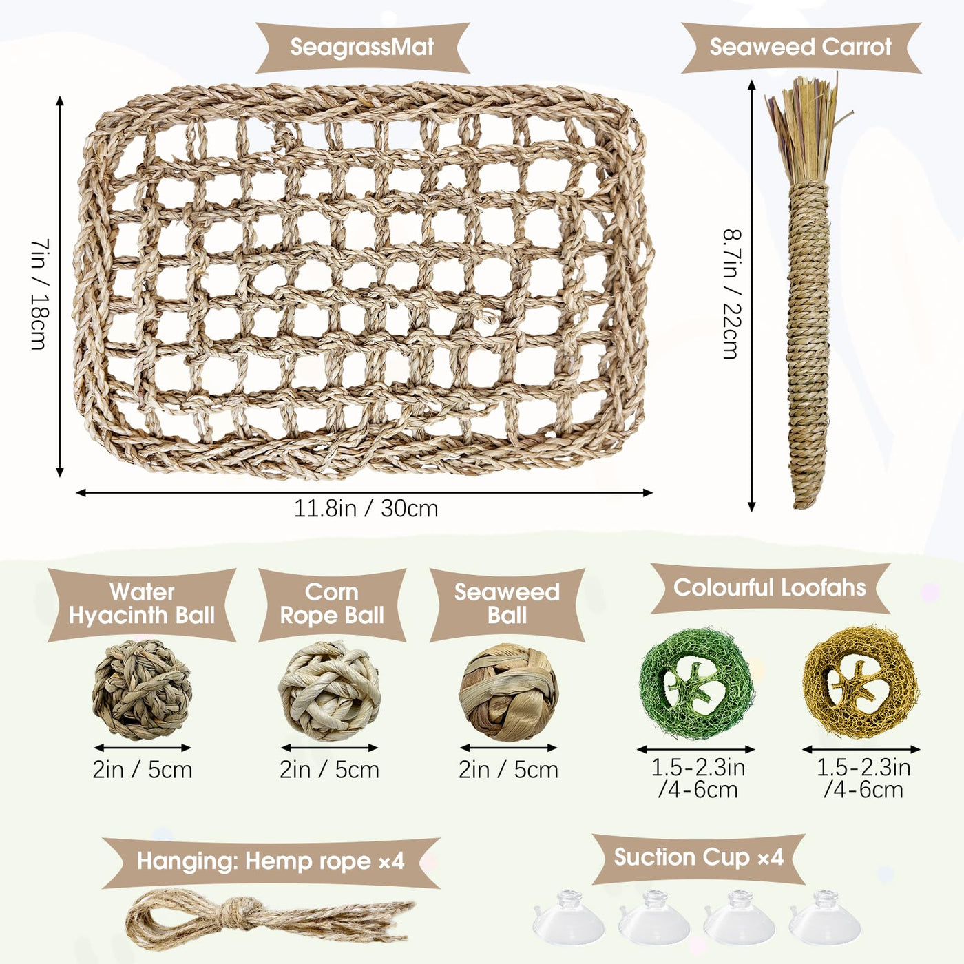 This Seagrass Mat Would Be A Great Gift For People Who Love Their Small Pets. Small Pets Will Love Chewing, Digging, And Eventually Destroying This Fun Toy. This Toy Made From Safe And Natural Materials, So You Can Feel Great Giving It To Your Pet. Teeth Grinding : Encourage Natural Chewing To Protect Dental Health High Fiber To Help Digestion : Maintains Intestinal Motility, Prmotes Digestion And Absortion Enjoy Foraging : Adding Fun, Relieving Boredom And Depression, Growing Healthily Suitable For Rabbits, Bunny, Guinea Pigs And Other Small Rodent Animals.Great For Playing And Nibbling, Help Prevent Boredom. These Small Animal Chew Balls Are Sturdy ,Your Pet Will Love To Tear Them To Pieces And It Will Keep Your Little Friend From Destroying Other Things In Your Home.Your Rabbit Can Throw Them And Run Around With Them In Mouth, Which Is Absolutely Adorable. Hamiledyi Balls More Sturdy,100% Natural Materials.Carefully Woven And Tied, An Ideal Toy For All Pets.Your Pets Will Love Them,These Balls Will Keep Your Pet Occupied For Well Over A Month Or Even More. Your Pet Will Love Throwing Them And Chewing. They Are Also A Good Size For Your Pets.