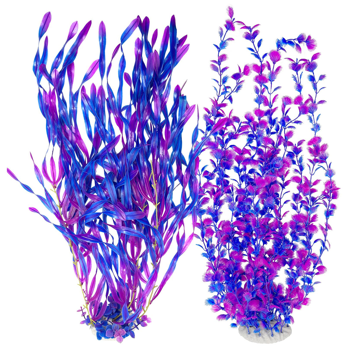Aquarium Plastic Plants Tall 23 Inches Fish Tank Decorations, Fish Tank Plants Artificial Green Water Plants Grass Cluster Aquarium D cor Soft Plastic Fake Aquarium Artificial Plants 2 PCS
