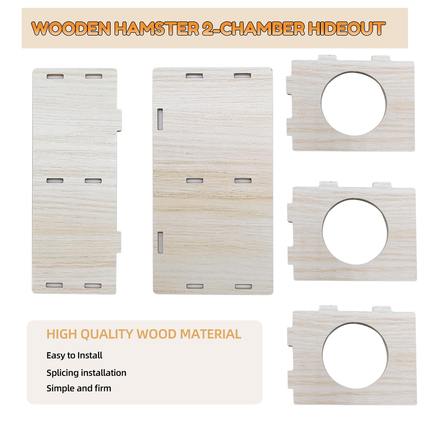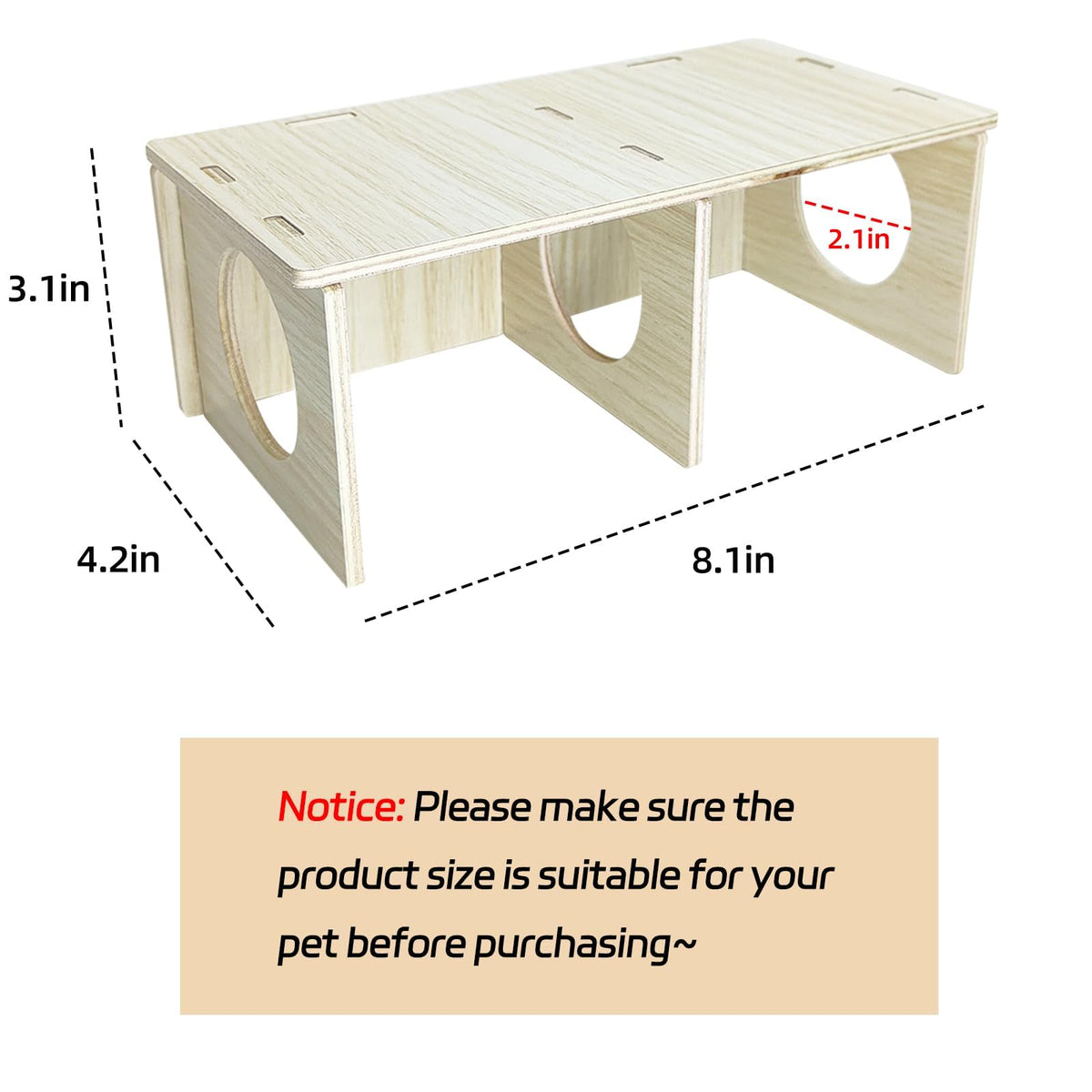 hamster hideout Natural material: The wooden hideout tunnel is made of solid wood material, which is natural and harmless to the health of hamsters. Good ventilation performance: The wooden hideout maze has good ventilation performance, which helps to keep the hamster comfortable and breathing smoothly. Good ventilation can effectively prevent moisture, thus protecting the health of hamsters. Sturdy and full of space: The wooden hideout is sturdy in construction and provides plenty of space for the hamster to move around and explore. The spacious space is beneficial for hamsters, allowing them to do moderate exercise and set up a variety of rich toys and rides. Warm in winter and cool in summer: Solid wood material has thermal insulation and cold performance, but also has good thermal insulation effect. This allows the wooden hideout tunnel to be warm in the winter and relatively cool in the summer, providing a comfortable living space for the hamster. Easy to observe: The two-room perspective design allows the owner to easily observe the life status of the hamster, such as eating, resting and so on. This design not only increases the enjoyment of breeding, but also helps the owner to detect abnormal behavior or health problems of the hamster in time. Beautiful and easy to integrate into the cage: Wooden hideout tunnel are beautiful in appearance and can be well integrated into the hamster cage, increasing the overall beauty of the cage interior. Bottomless design: Bottomless design eliminates the adsorption of urine on the bottom, making cleaning easy. It has also adapted to the hamster's habit of burrowing, which can be used to hide or to dig down. To sum up,our wooden hamster hiding maze is a good hamster toy, can be used in the hamster cage free scenery, to provide them with a comfortable living space, but can be regarded as a necessary hamster accessories.