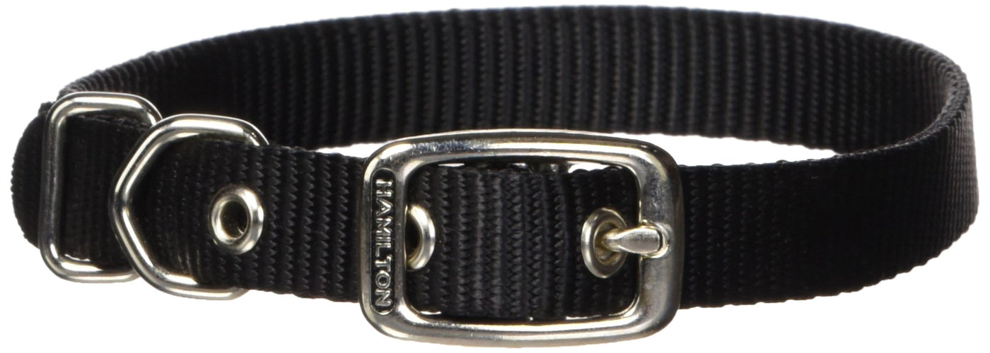 Hamilton 5/8-Inch By 18-Inch Single Thick Nylon Deluxe Dog Collar Is Constructed With Custom Dyed Webbing To Reduce Fading And Bleeding. 100-Percent First Run Webbing Is Used To Outperform Others In Strength, Flexibility And Durability. The High Thread Count Results In An Unmatched Feel. All Cuts Are Finished Away From Dog'S Neck To Avoid Irritation. Shoe Grade Constructions Eyelets Enhance Look And Eliminate Fraying.