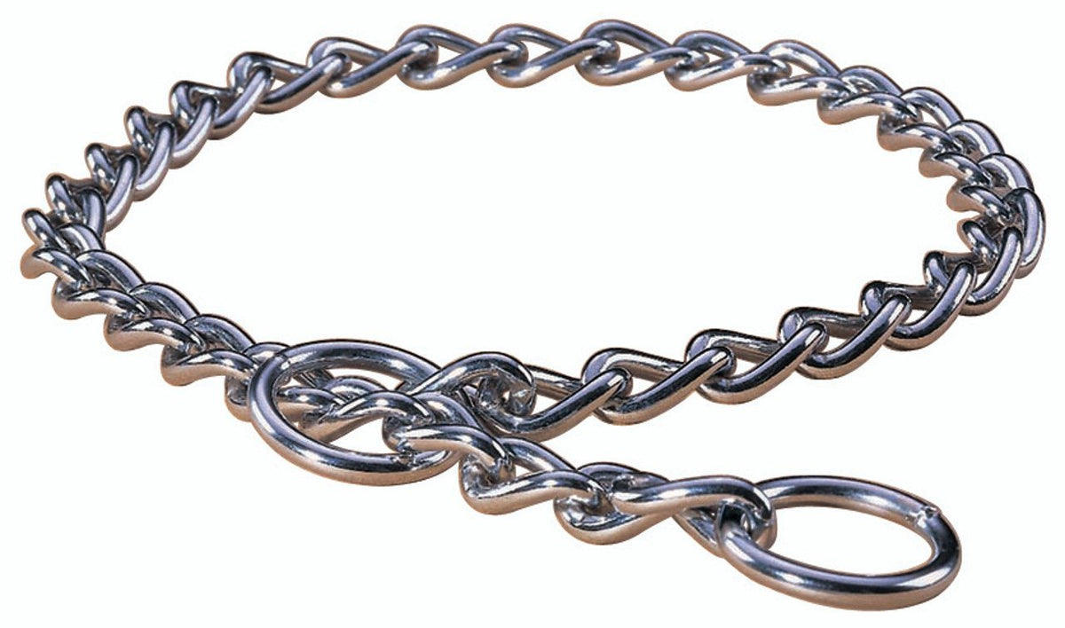 Q: How do I care for the Hamilton Heavy Choke Chain Collar?A: To maintain the collar's durability, regularly check for any signs of wear. Clean it with a damp cloth and mild soap, and ensure it is completely dry before storing.