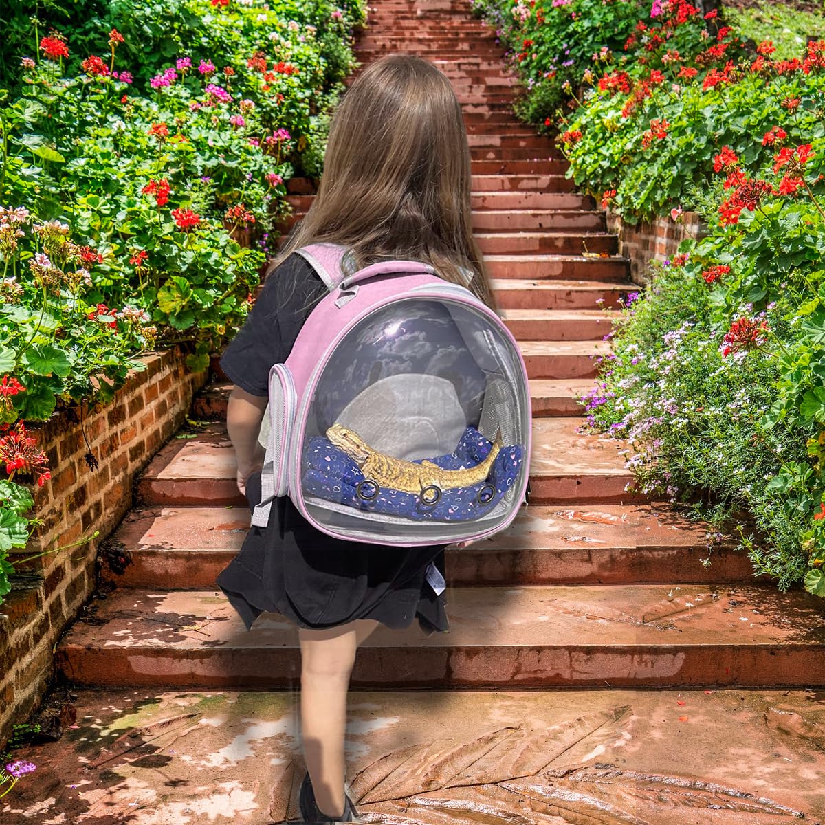Q: How does the clear bubble window benefit my pet?A: The clear bubble window allows your pet to enjoy the scenery and sunshine during outdoor adventures while providing a safe and secure environment inside the backpack.