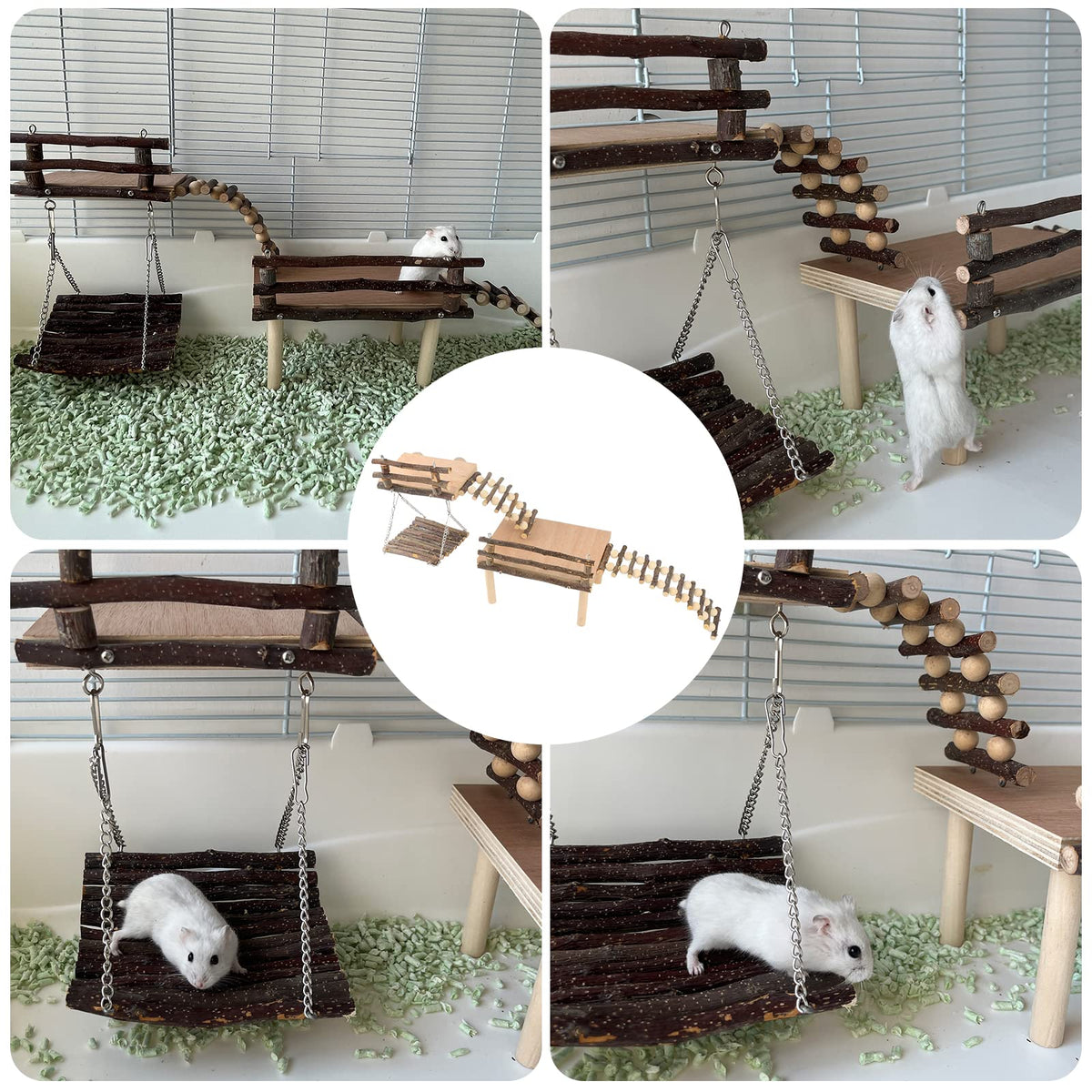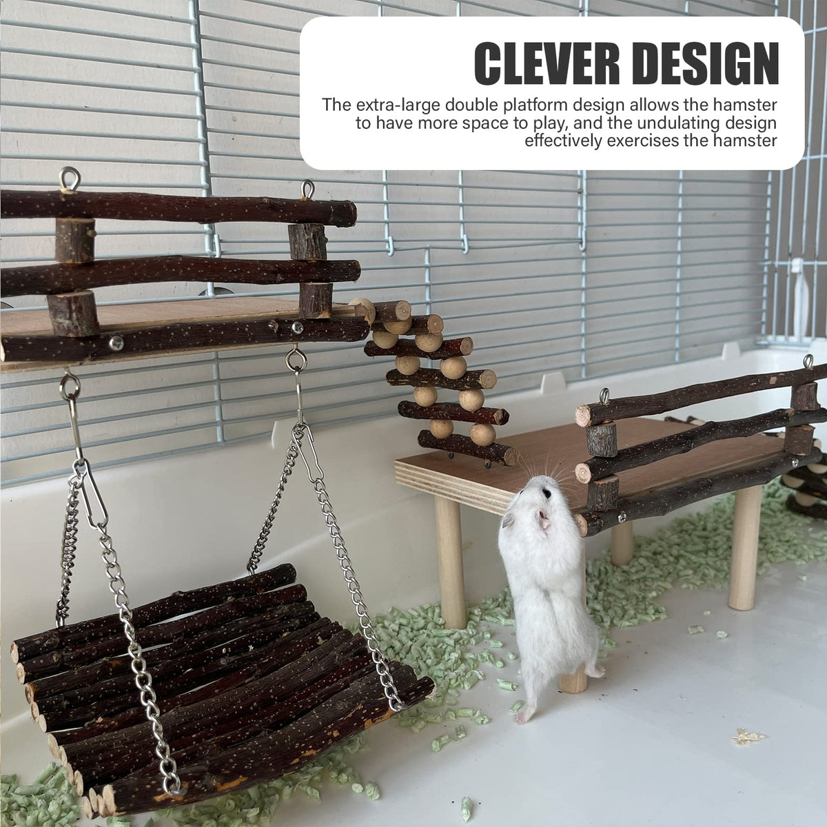 Hamster Climbing Toys Diy Natural Wooden Playing Platform With Swing Apple Wood Hamster Playground With 2 Platform, 2 Bridge Small Animal Chewing Toys For Gift