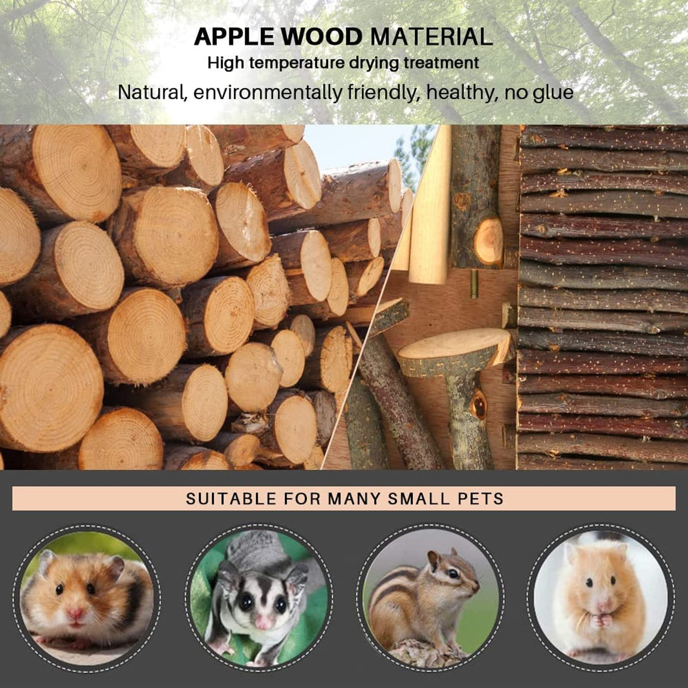 Q: Is the material safe for my hamster?A: Yes, the Hamster Climbing Toys are made of high-quality apple wood that has undergone high-temperature drying. This natural wood is safe and non-toxic for your pets, ensuring a healthy play environment.