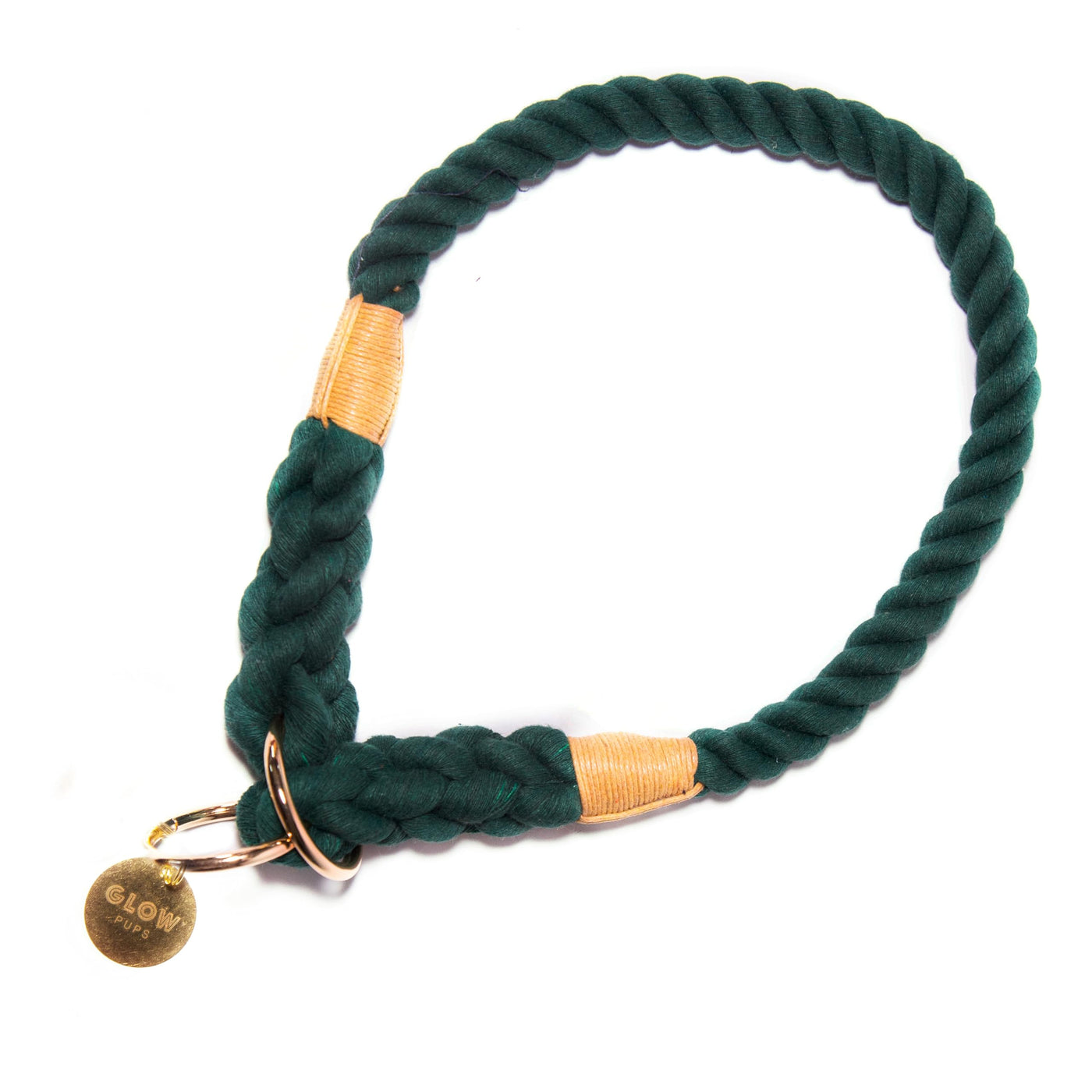 Handmade Ombre Rope Slip Dog Collar For Medium And Large Dogs (Dark Green, Large)